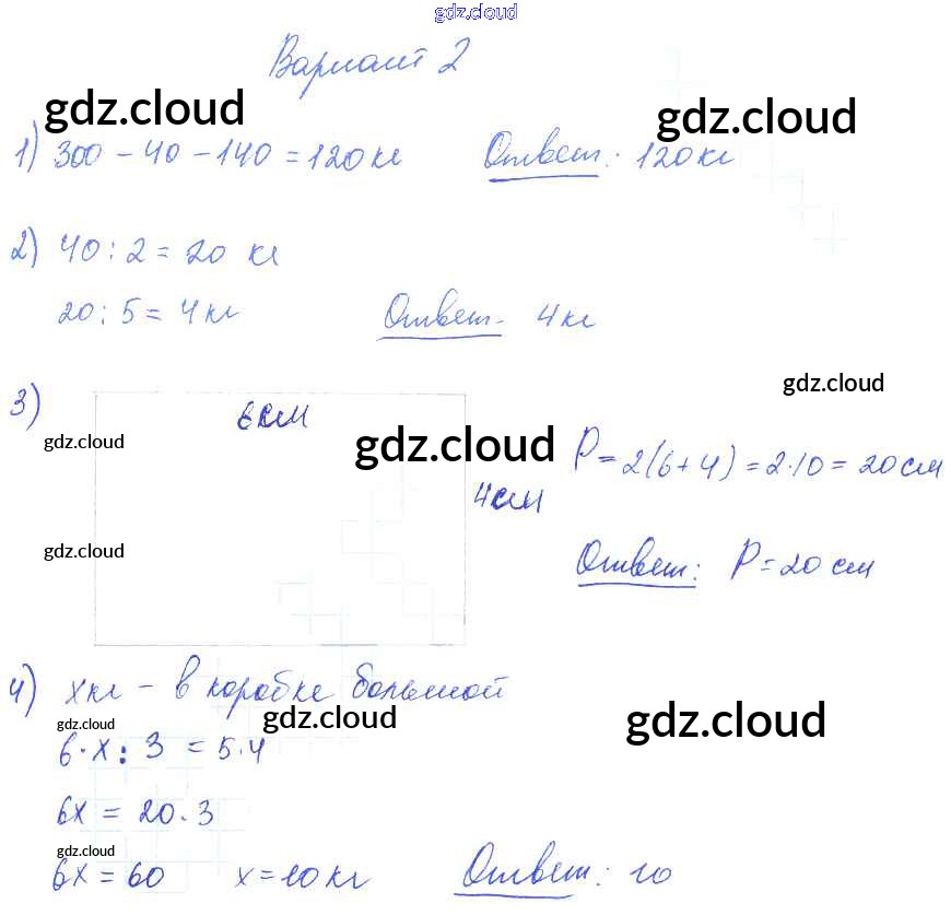 Ответ на задание Вариант 2 Контрольные работы Математика за 1, 2, 3, 4 (первый, второй, третий, четвертый) класс Волкова Школа России 2017