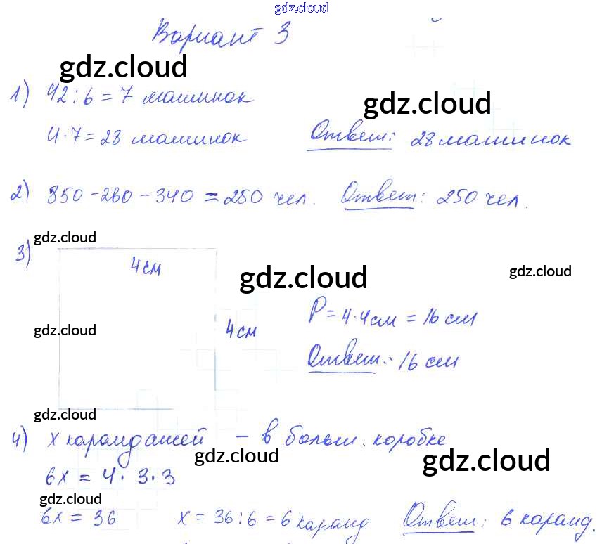 Ответ на задание Вариант 3 Контрольные работы Математика за 1, 2, 3, 4 (первый, второй, третий, четвертый) класс Волкова Школа России 2017