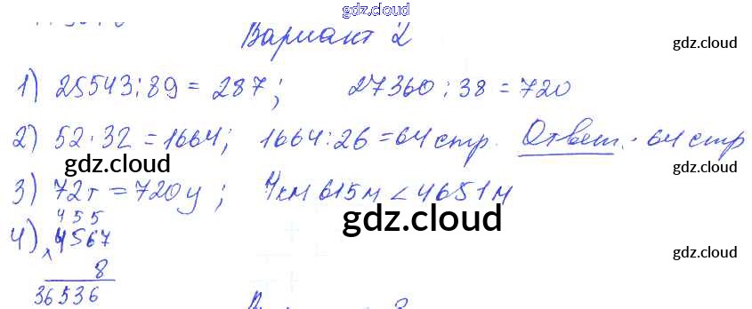 Ответ на задание Вариант 2 Контрольные работы Математика за 1, 2, 3, 4 (первый, второй, третий, четвертый) класс Волкова Школа России 2017