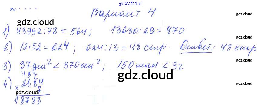 Ответ на задание Вариант 4 Контрольные работы Математика за 1, 2, 3, 4 (первый, второй, третий, четвертый) класс Волкова Школа России 2017