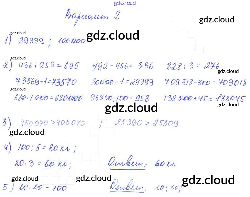 Ответ на задание Вариант 2 Контрольные работы Математика за 1, 2, 3, 4 (первый, второй, третий, четвертый) класс Волкова Школа России 2017