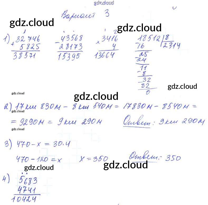 Ответ на задание Вариант 3 Контрольные работы Математика за 1, 2, 3, 4 (первый, второй, третий, четвертый) класс Волкова Школа России 2017