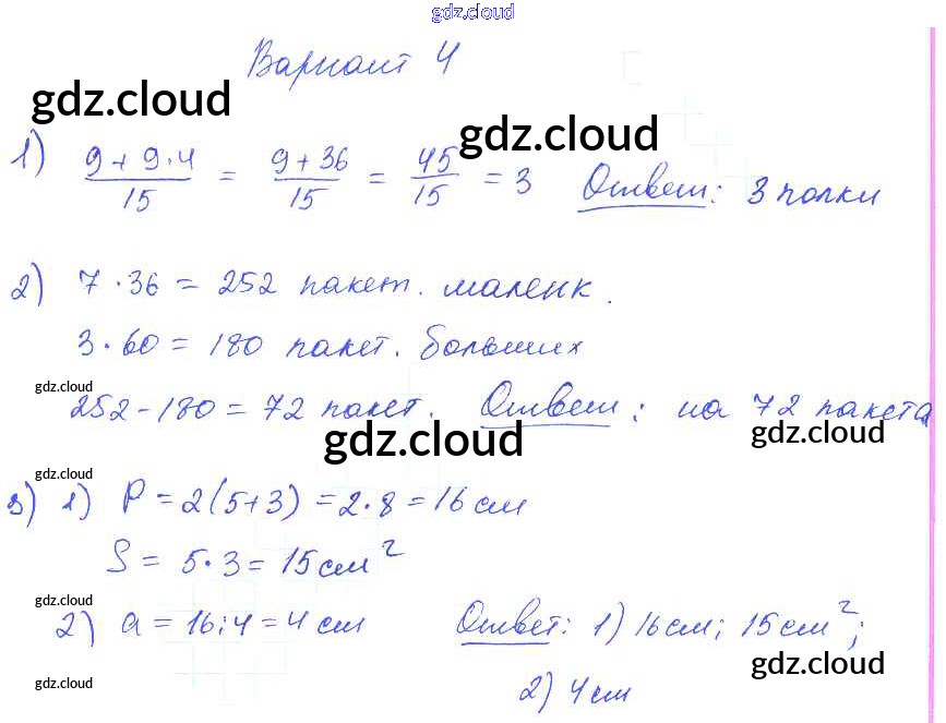 Ответ на задание Вариант 4 Контрольные работы Математика за 1, 2, 3, 4 (первый, второй, третий, четвертый) класс Волкова Школа России 2017