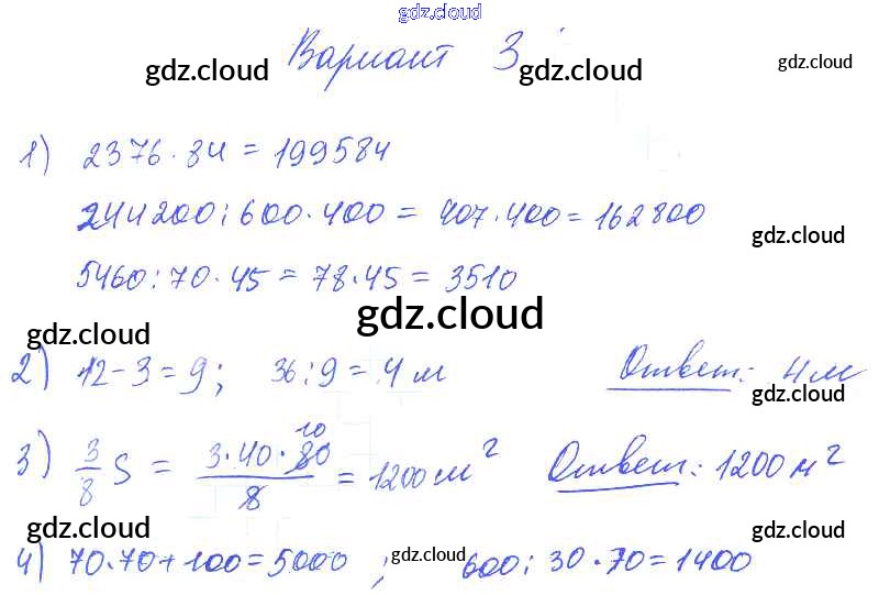 Ответ на задание Вариант 3 Контрольные работы Математика за 1, 2, 3, 4 (первый, второй, третий, четвертый) класс Волкова Школа России 2017