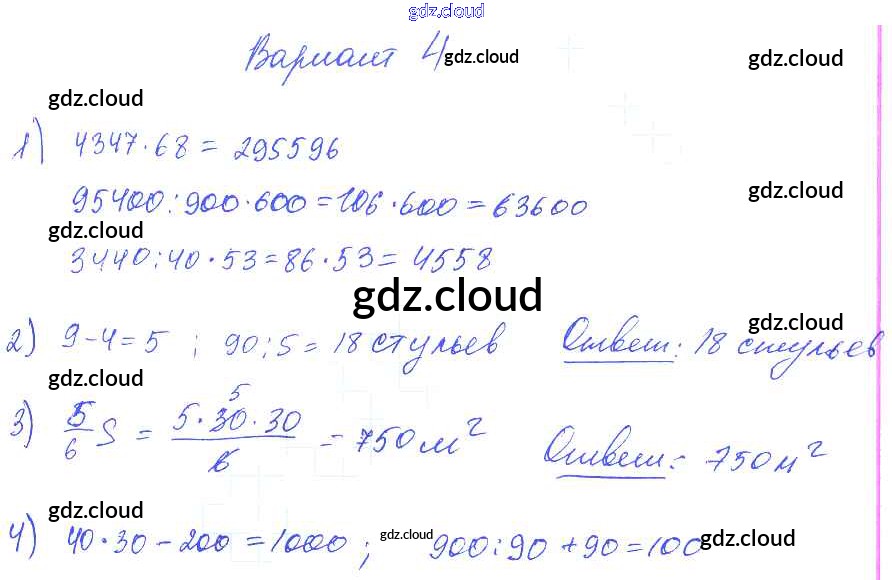 Ответ на задание Вариант 4 Контрольные работы Математика за 1, 2, 3, 4 (первый, второй, третий, четвертый) класс Волкова Школа России 2017