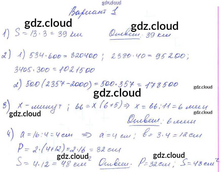 Ответ на задание Вариант 1 Контрольные работы Математика за 1, 2, 3, 4 (первый, второй, третий, четвертый) класс Волкова Школа России 2017