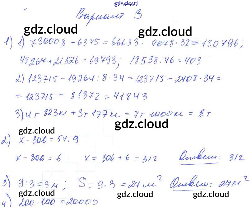 Ответ на задание Вариант 3 Контрольные работы Математика за 1, 2, 3, 4 (первый, второй, третий, четвертый) класс Волкова Школа России 2017