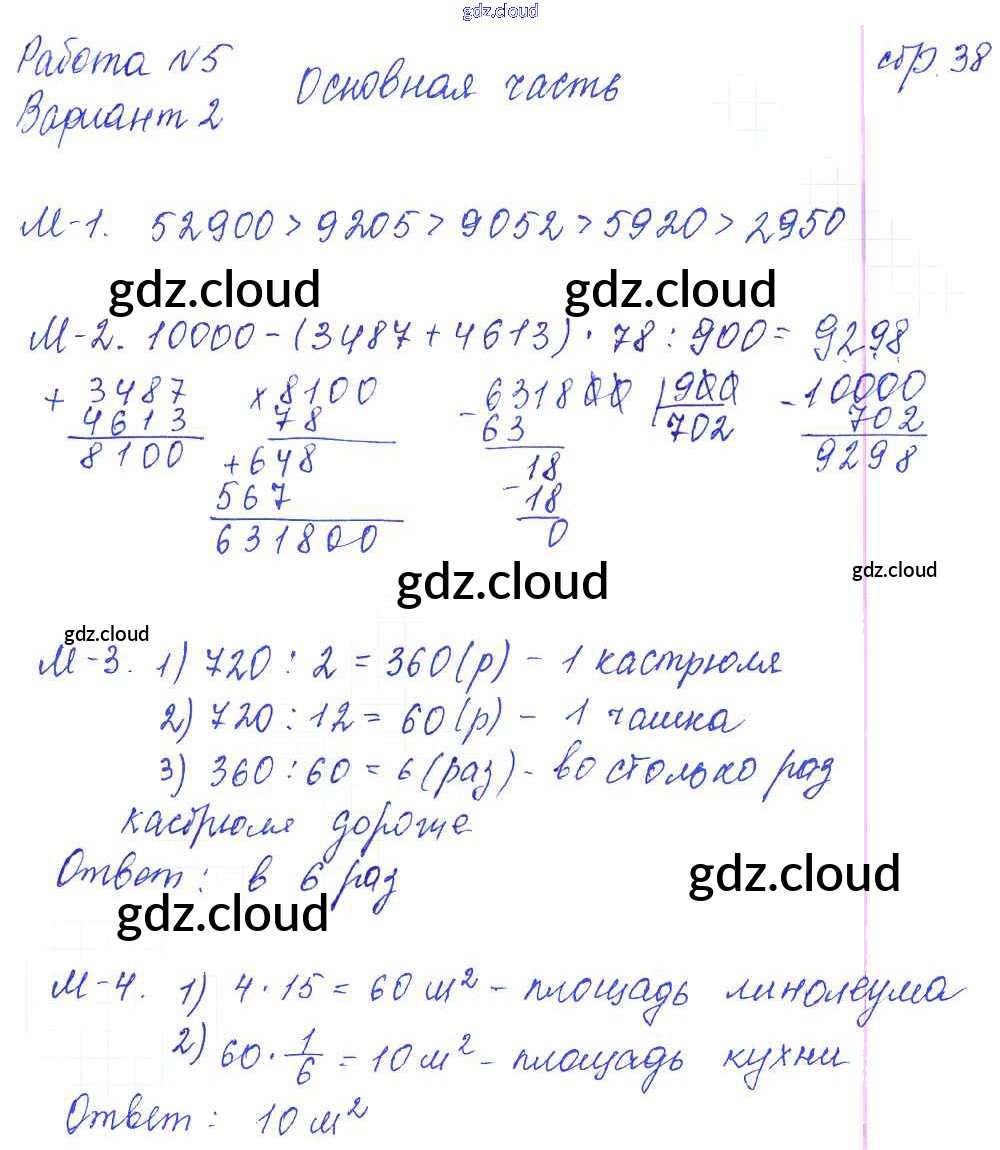 Ответ на задание 38 Контрольные и диагностические работы Математика за 4 (четвертый) класс Нефедова Планета знаний 2016