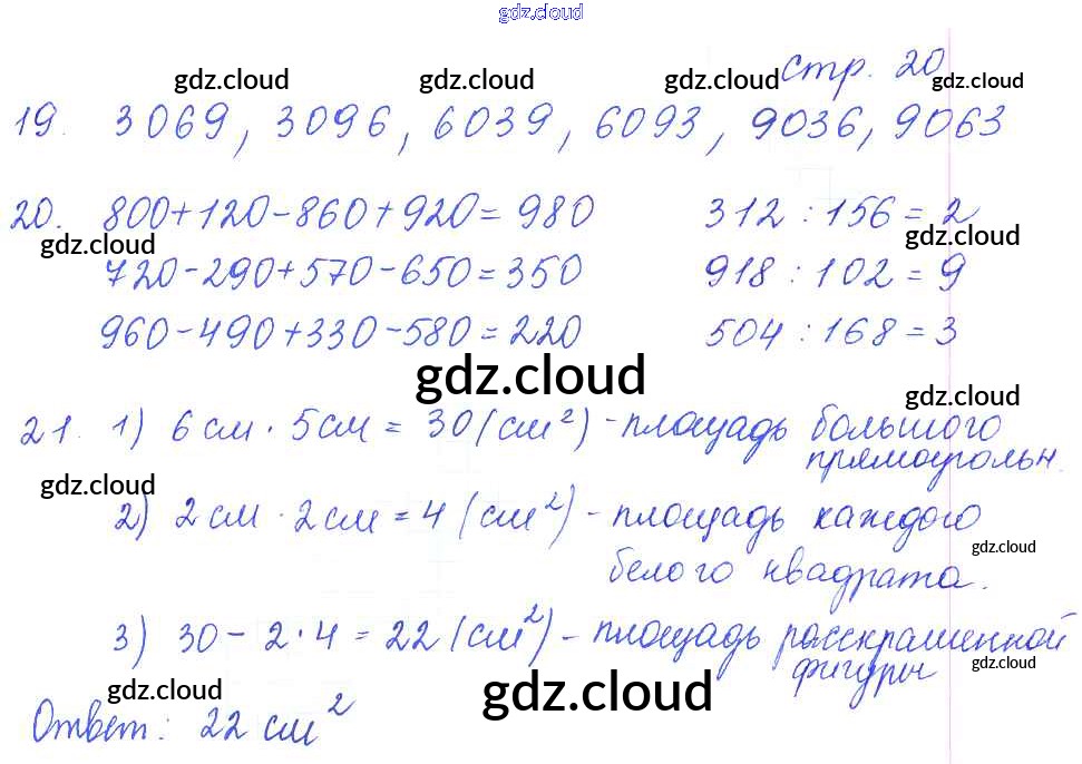 Ответ на задание 20 Рабочая тетрадь Математика за 4 (четвертый) класс Кремнева УМК 2018 Часть 1, 2 ФГОС онлайн и без номера телефона.