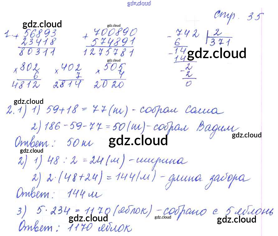 Ответ на задание 35 Рабочая тетрадь Математика за 4 (четвертый) класс Кремнева УМК 2018 Часть 1, 2 ФГОС онлайн и без номера телефона.