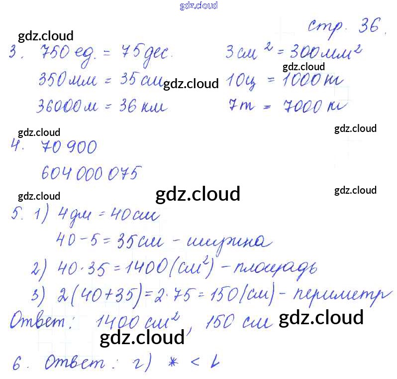 Ответ на задание 36 Рабочая тетрадь Математика за 4 (четвертый) класс Кремнева УМК 2018 Часть 1, 2 ФГОС онлайн и без номера телефона.