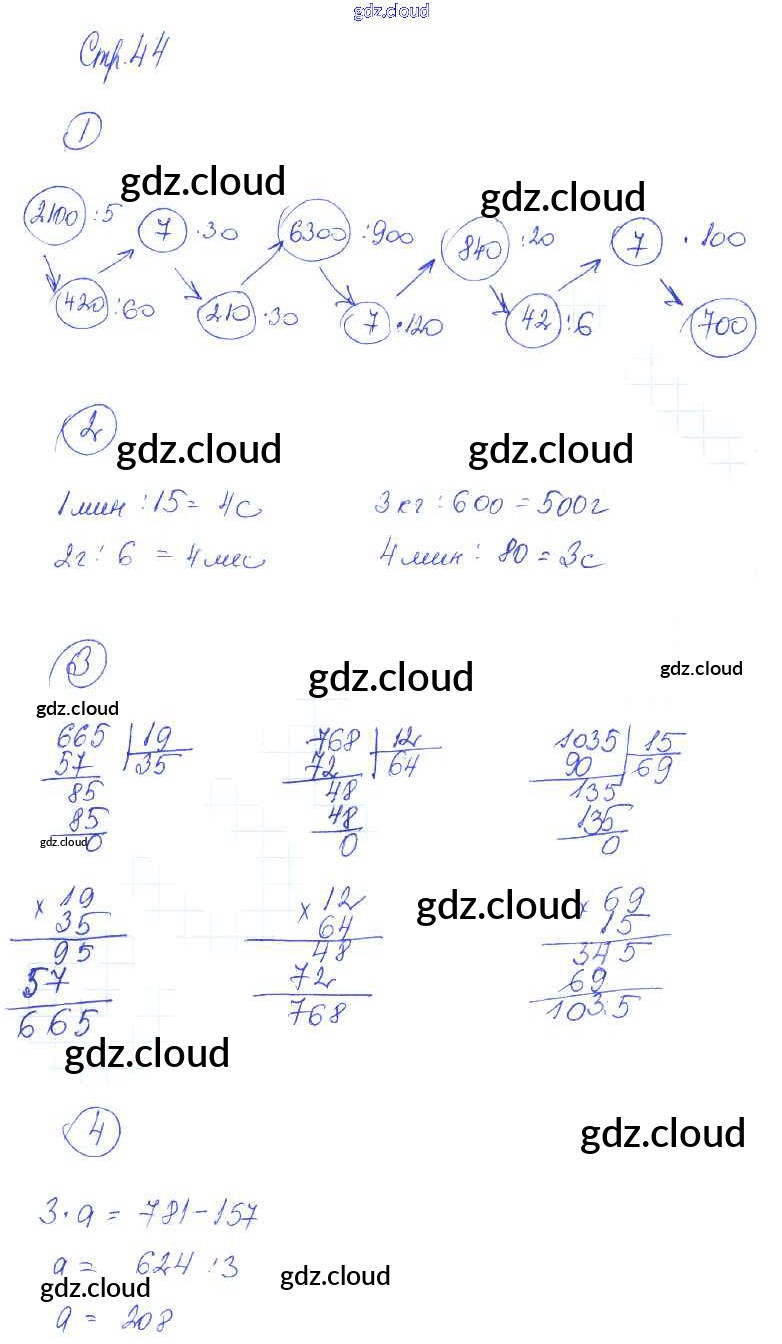 Ответ на задание 44 Рабочая тетрадь Математика за 4 (четвертый) класс Кремнева УМК 2018 Часть 1, 2 ФГОС онлайн и без номера телефона.