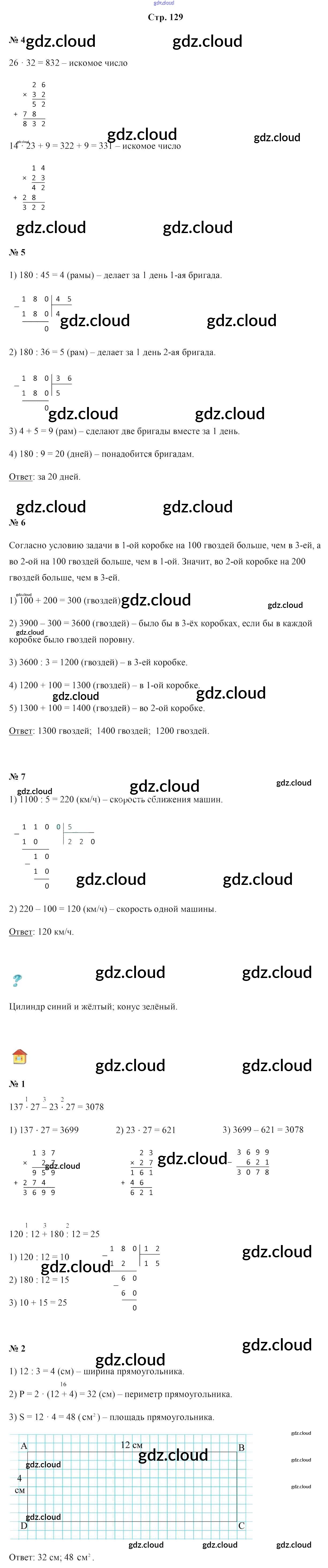 Ответ на задание 129 Учебник Математика за 4 (четвертый) класс Муравьева, Урбан 2018 Часть 1, 2