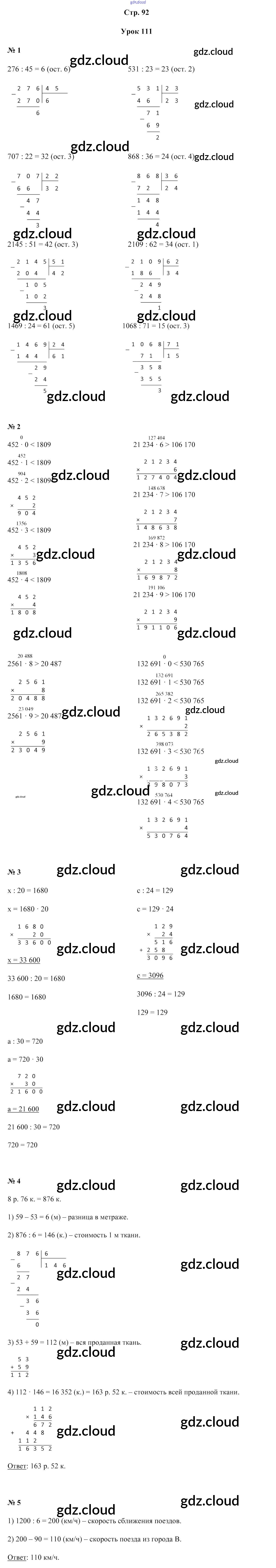 Ответ на задание 92 Учебник Математика за 4 (четвертый) класс Муравьева, Урбан 2018 Часть 1, 2