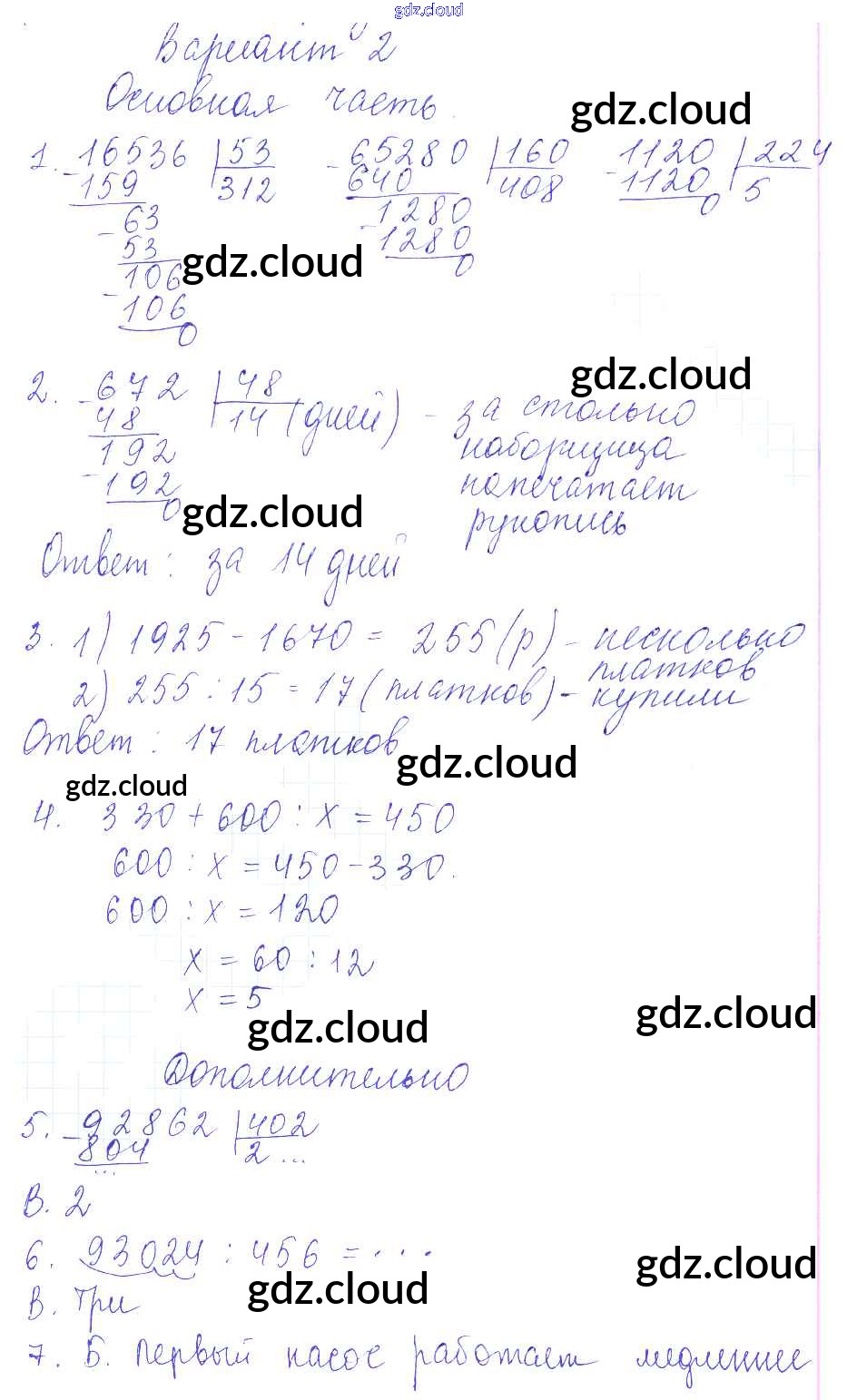 Ответ на задание 2 Тесты и самостоятельные работы для текущего контроля Математика за 4 (четвертый) класс Нефедова Планета знаний 2016