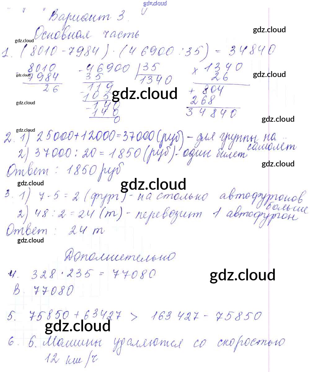 Ответ на задание 3 Тесты и самостоятельные работы для текущего контроля Математика за 4 (четвертый) класс Нефедова Планета знаний 2016
