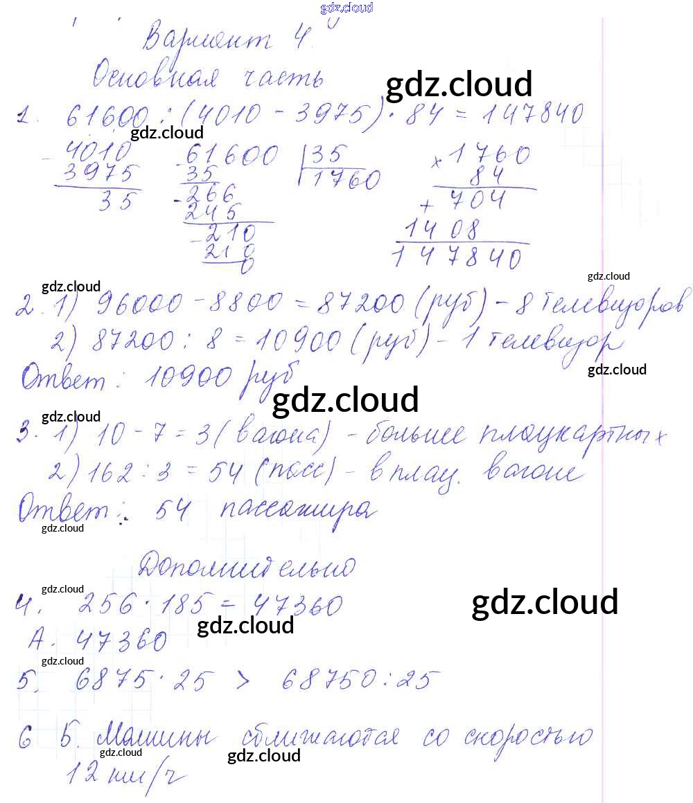 Ответ на задание 4 Тесты и самостоятельные работы для текущего контроля Математика за 4 (четвертый) класс Нефедова Планета знаний 2016