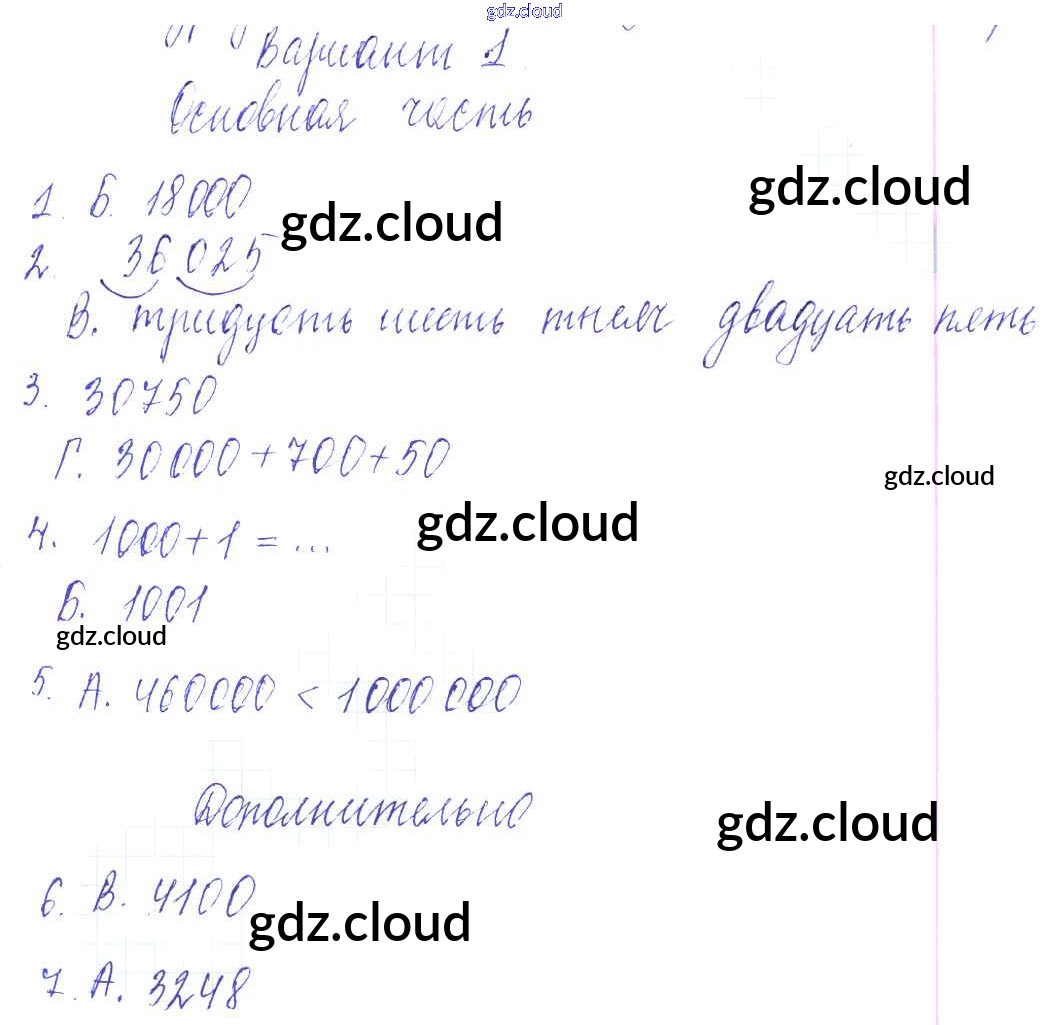Тест №1 Ответы к тестам (варианты) по Математике 4 класс Тесты и самостоятельные работы для текущего контроля Нефедова Планета знаний Дрофа