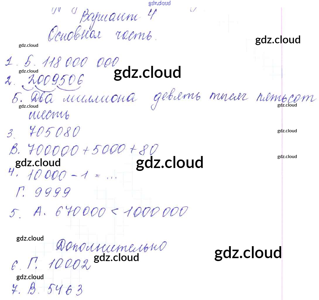 Тест №1 Ответы к тестам (варианты) по Математике 4 класс Тесты и самостоятельные работы для текущего контроля Нефедова Планета знаний Дрофа