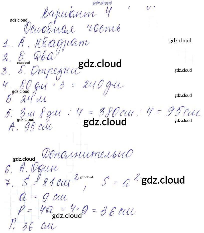 Тест №4 Ответы к тестам (варианты) по Математике 4 класс Тесты и самостоятельные работы для текущего контроля Нефедова Планета знаний Дрофа