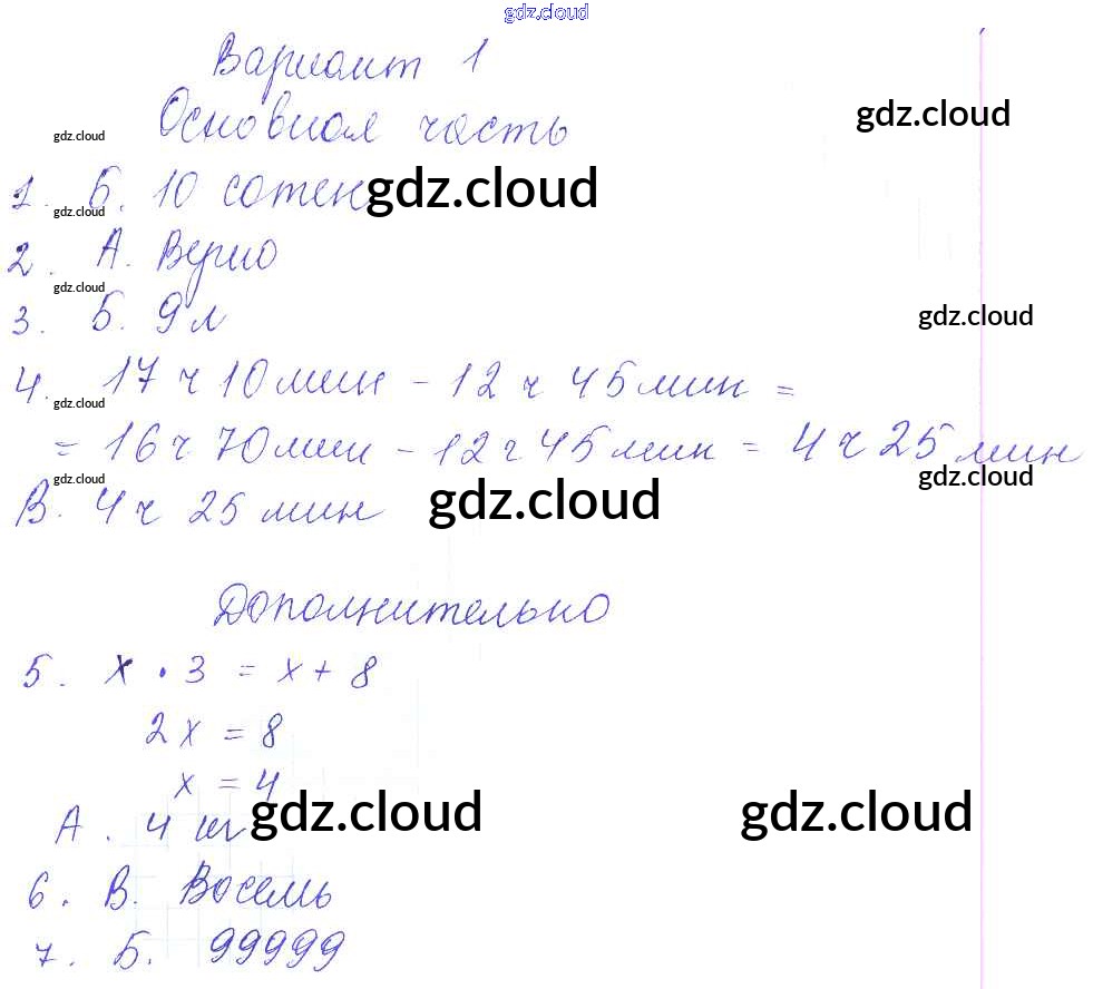Тест №8 Ответы к тестам (варианты) по Математике 4 класс Тесты и самостоятельные работы для текущего контроля Нефедова Планета знаний Дрофа