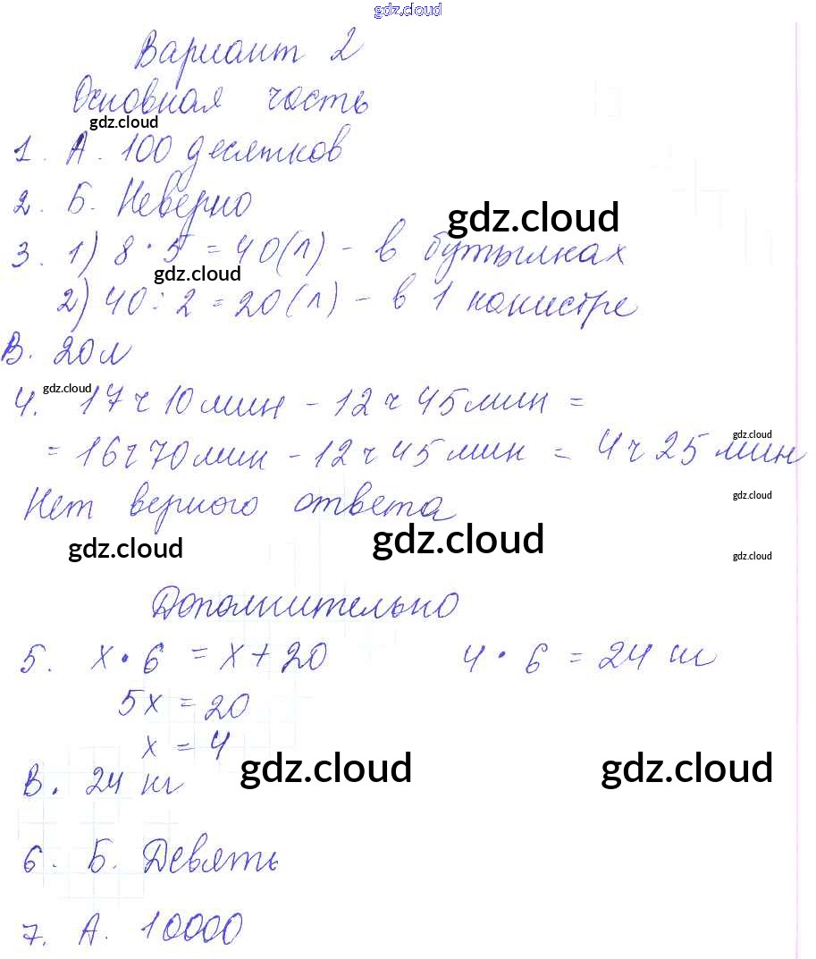 Тест №8 Ответы к тестам (варианты) по Математике 4 класс Тесты и самостоятельные работы для текущего контроля Нефедова Планета знаний Дрофа