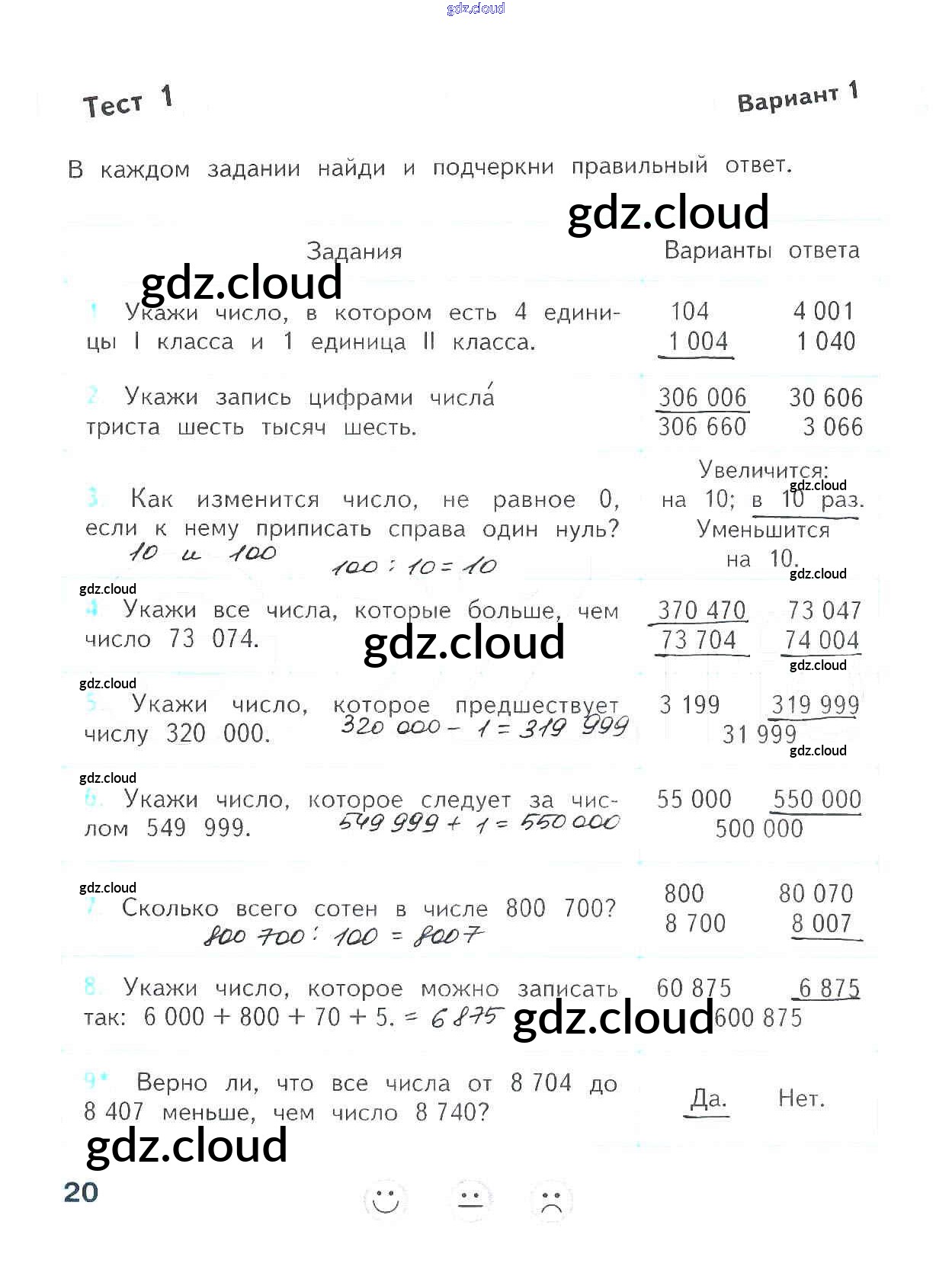 Ответ на задание 20 Проверочные работы Математика за 4 (четвертый) класс Волкова Школа России 2014