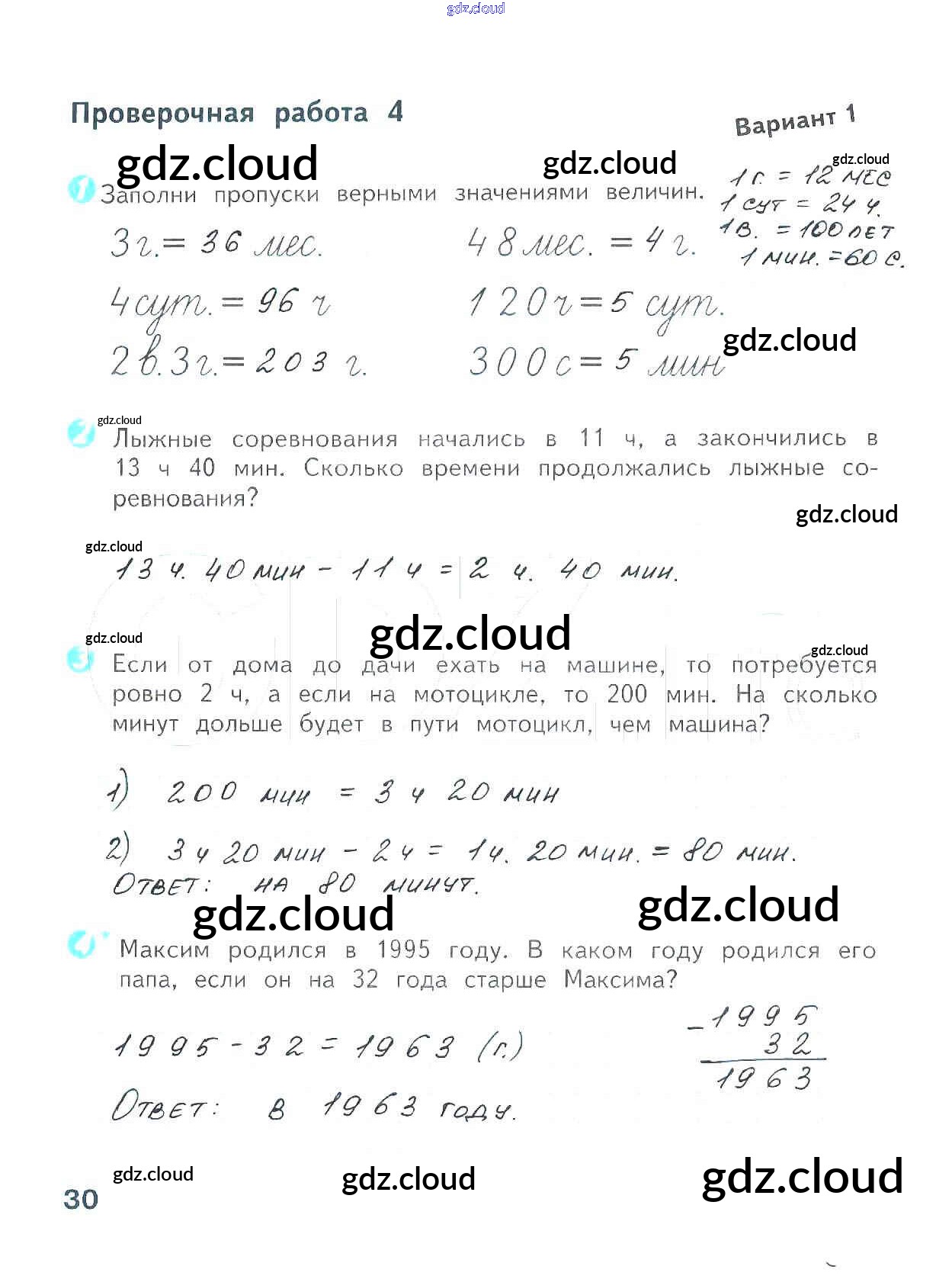 Ответ на задание 30 Проверочные работы Математика за 4 (четвертый) класс Волкова Школа России 2014