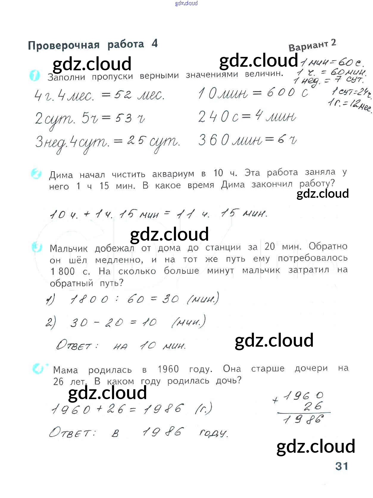 Ответ на задание 31 Проверочные работы Математика за 4 (четвертый) класс Волкова Школа России 2014