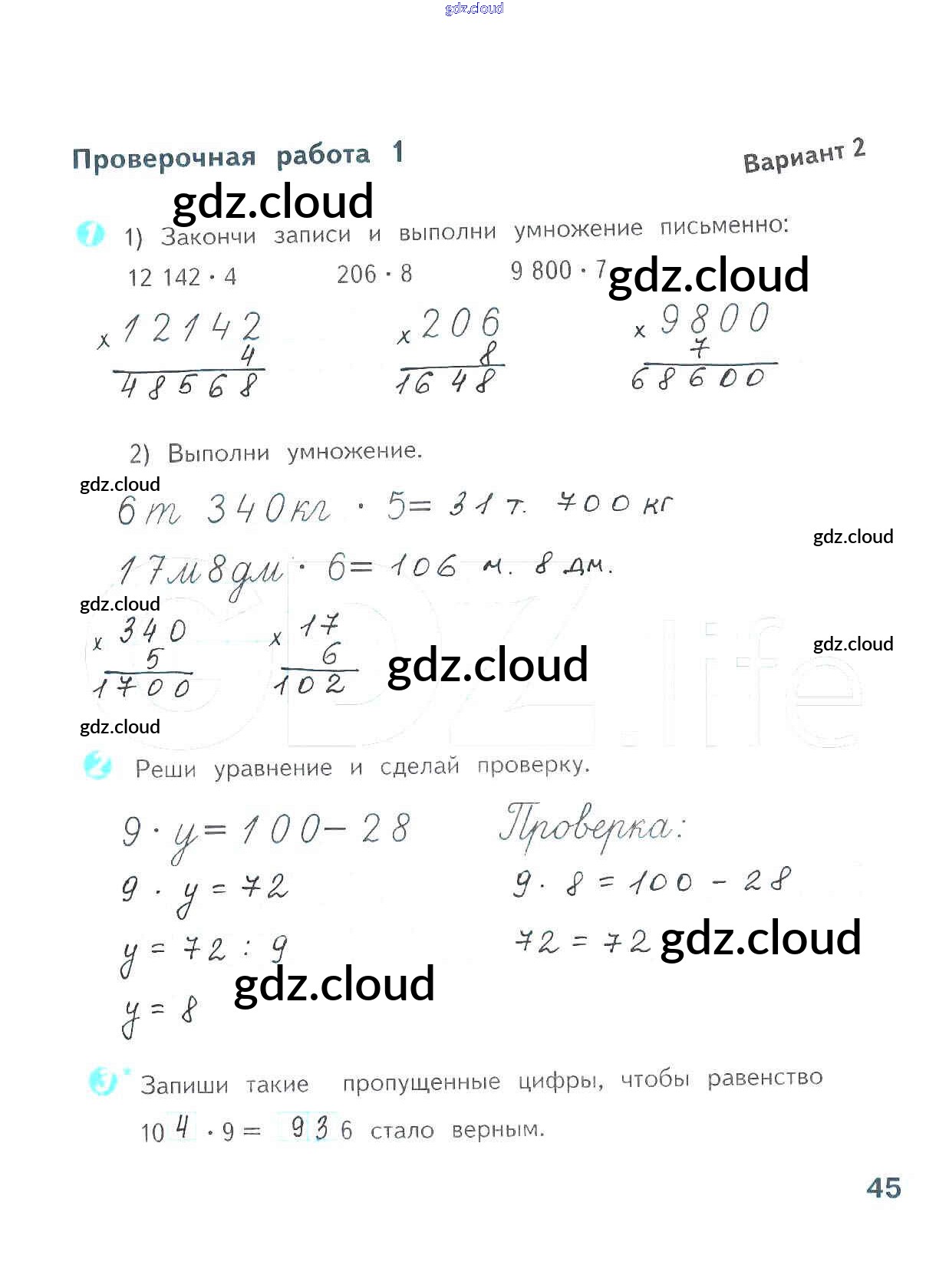 Ответ на задание 45 Проверочные работы Математика за 4 (четвертый) класс Волкова Школа России 2014