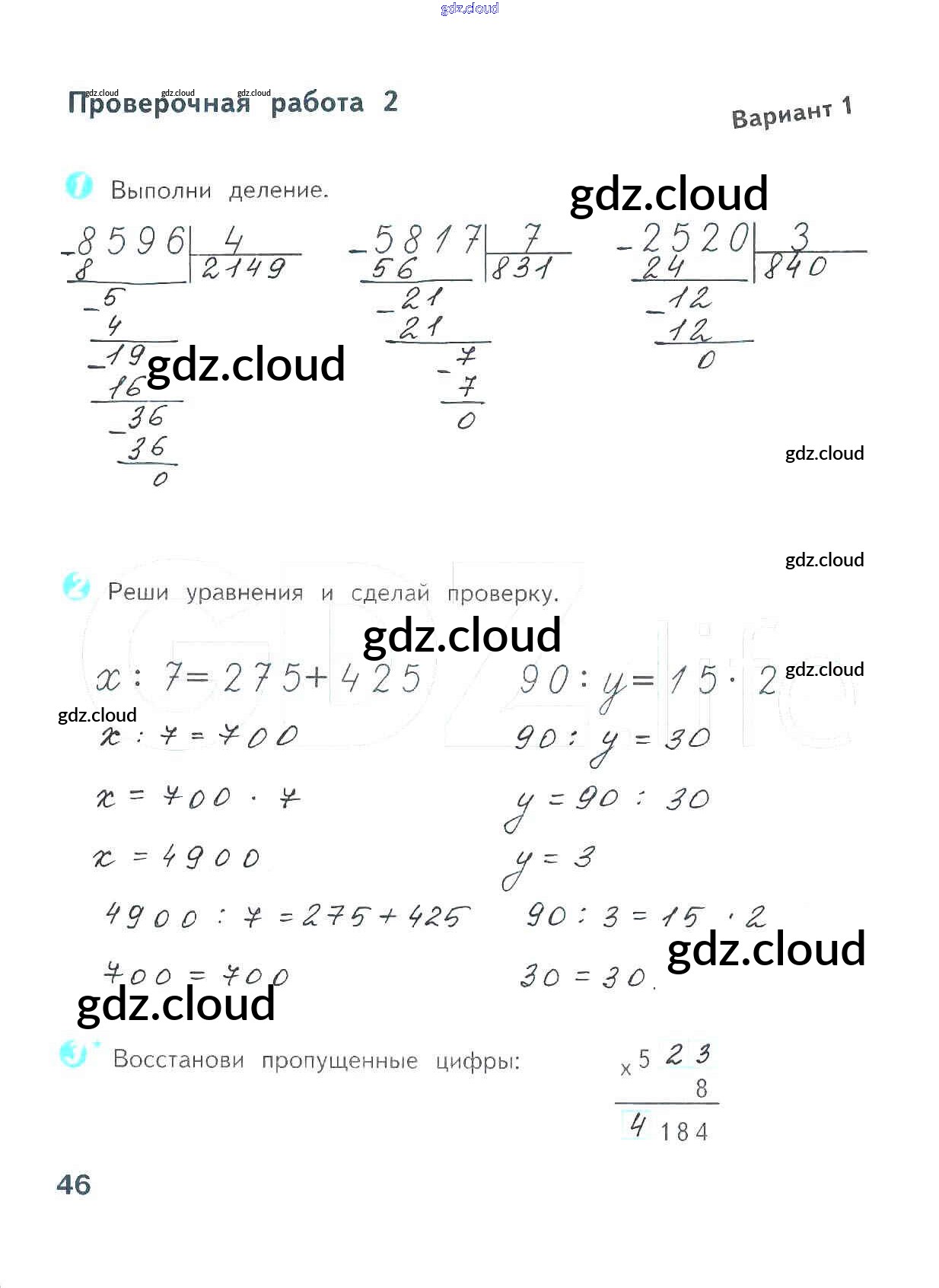 Ответ на задание 46 Проверочные работы Математика за 4 (четвертый) класс Волкова Школа России 2014