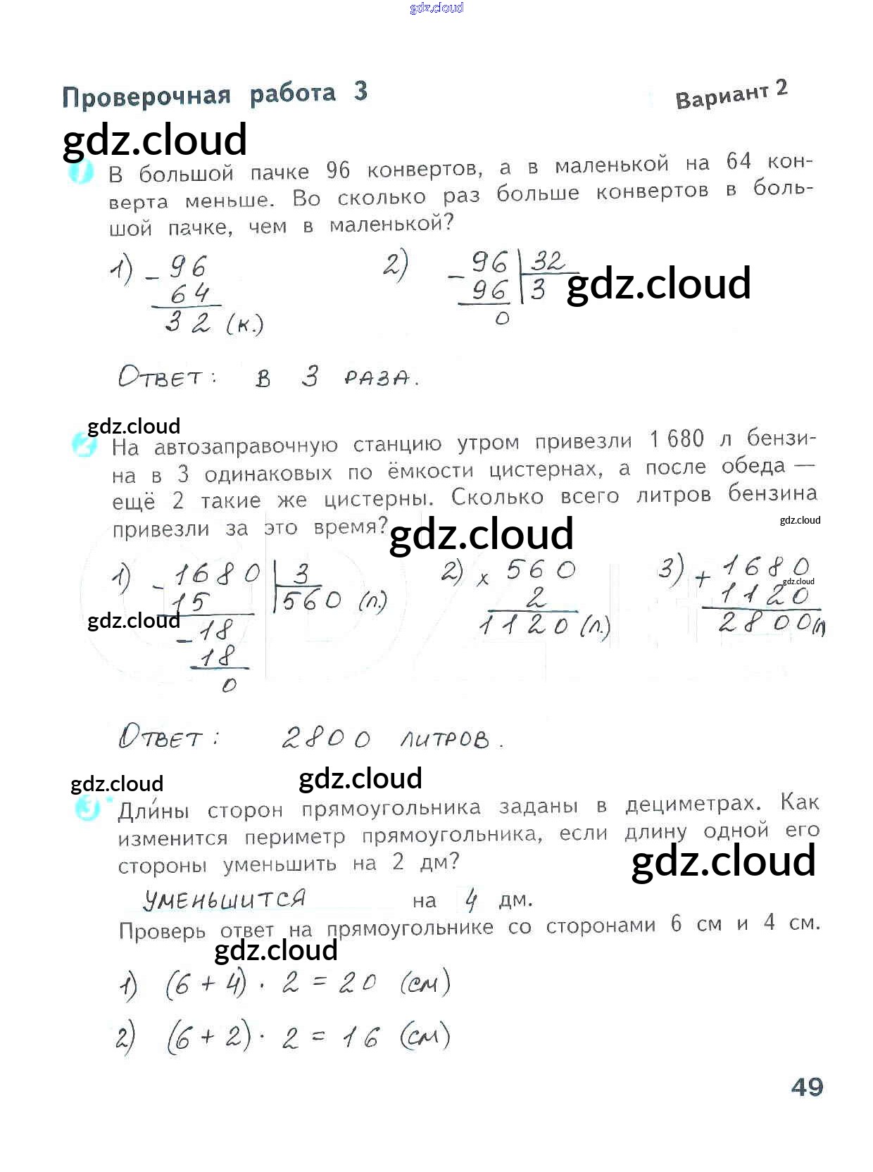 Ответ на задание 49 Проверочные работы Математика за 4 (четвертый) класс Волкова Школа России 2014