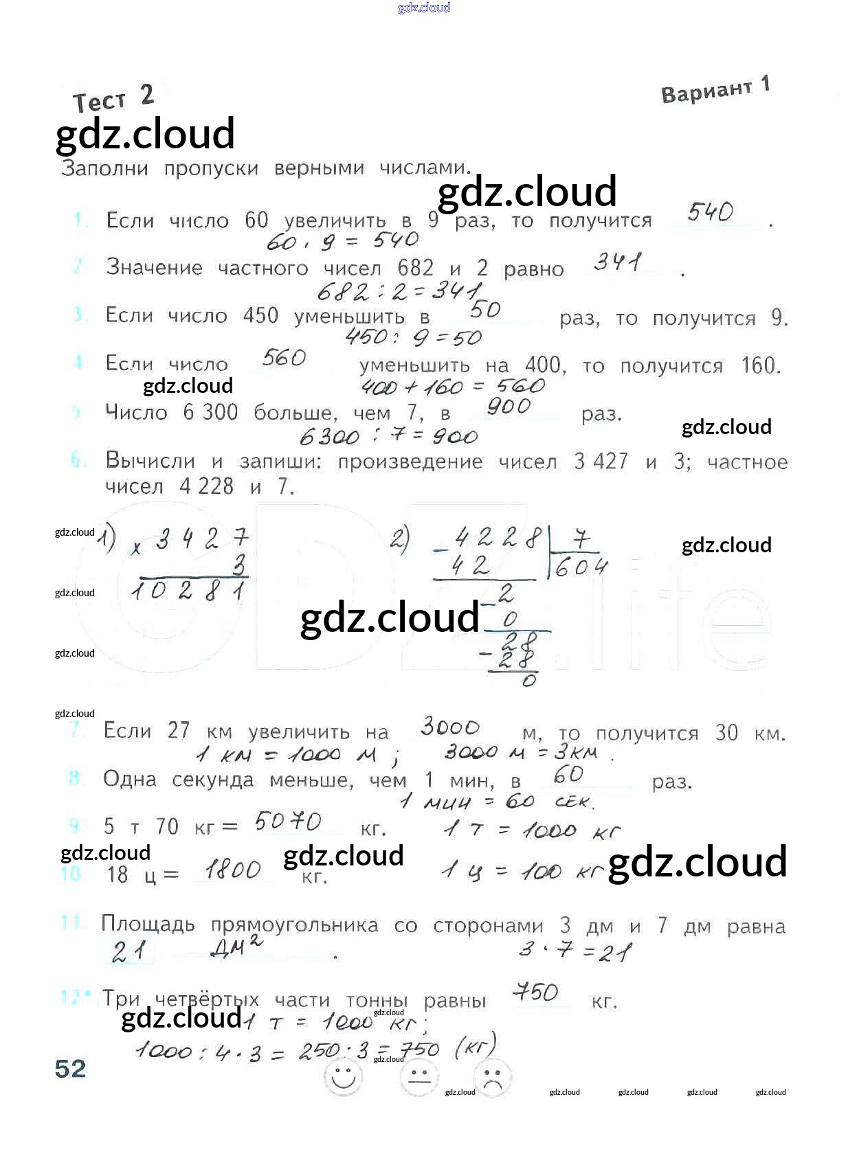 Ответ на задание 52 Проверочные работы Математика за 4 (четвертый) класс Волкова Школа России 2014