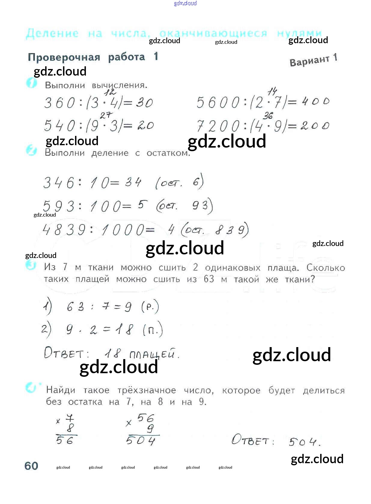 Ответ на задание 60 Проверочные работы Математика за 4 (четвертый) класс Волкова Школа России 2014