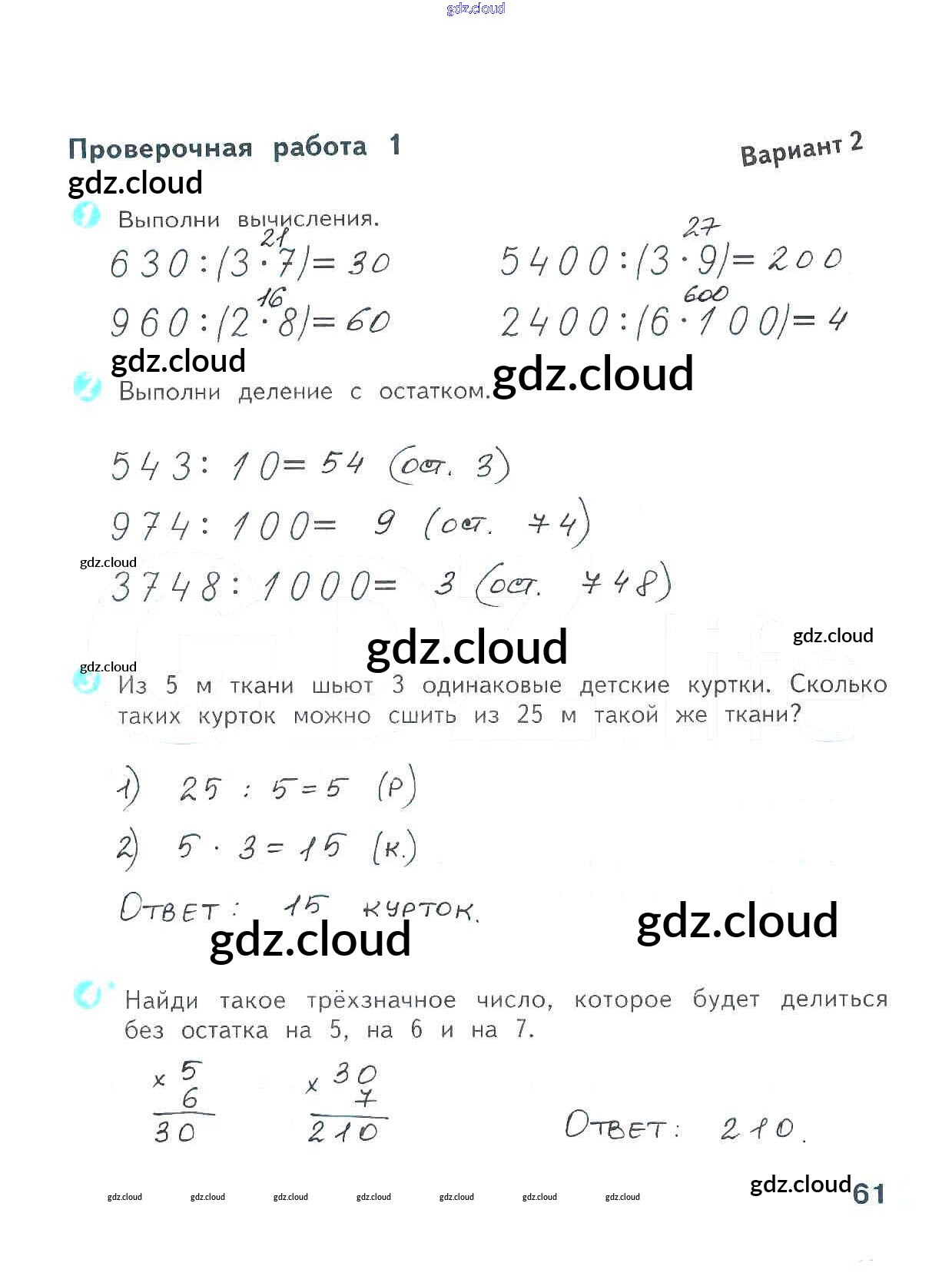 Ответ на задание 61 Проверочные работы Математика за 4 (четвертый) класс Волкова Школа России 2014