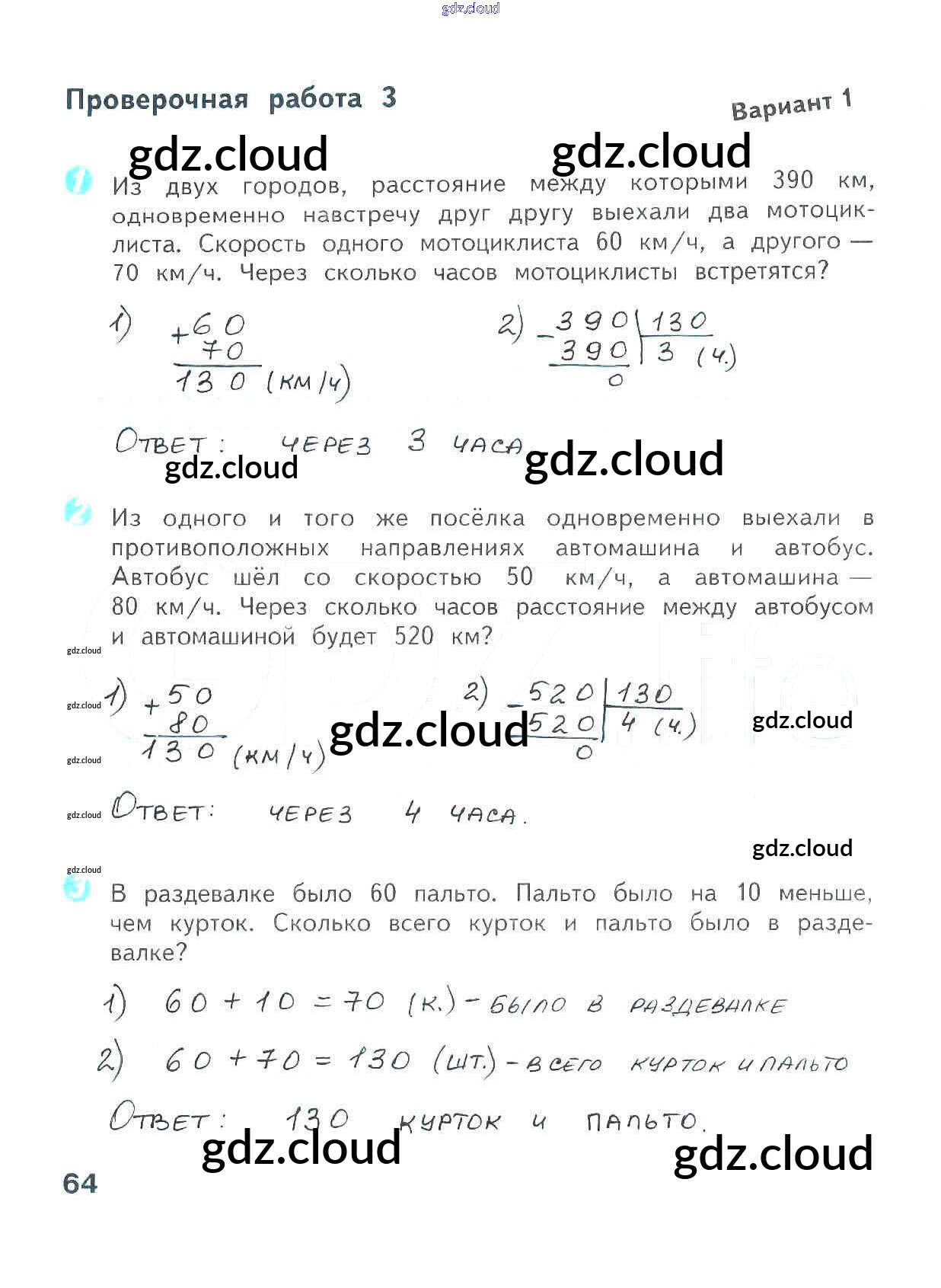 Ответ на задание 64 Проверочные работы Математика за 4 (четвертый) класс Волкова Школа России 2014
