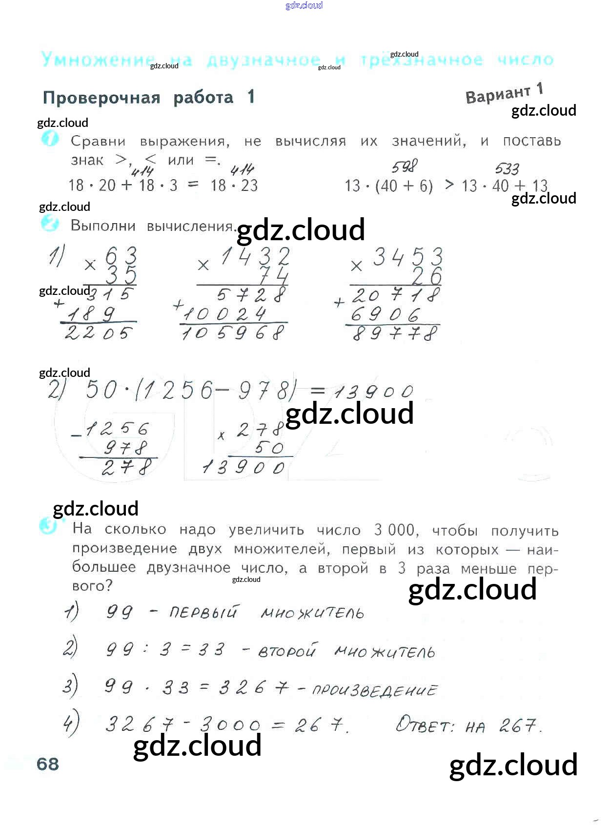 Ответ на задание 68 Проверочные работы Математика за 4 (четвертый) класс Волкова Школа России 2014