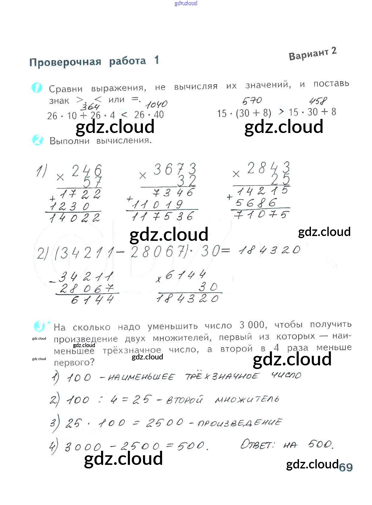 Ответ на задание 69 Проверочные работы Математика  за 4 (четвертый) класс Волкова Школа России  2014