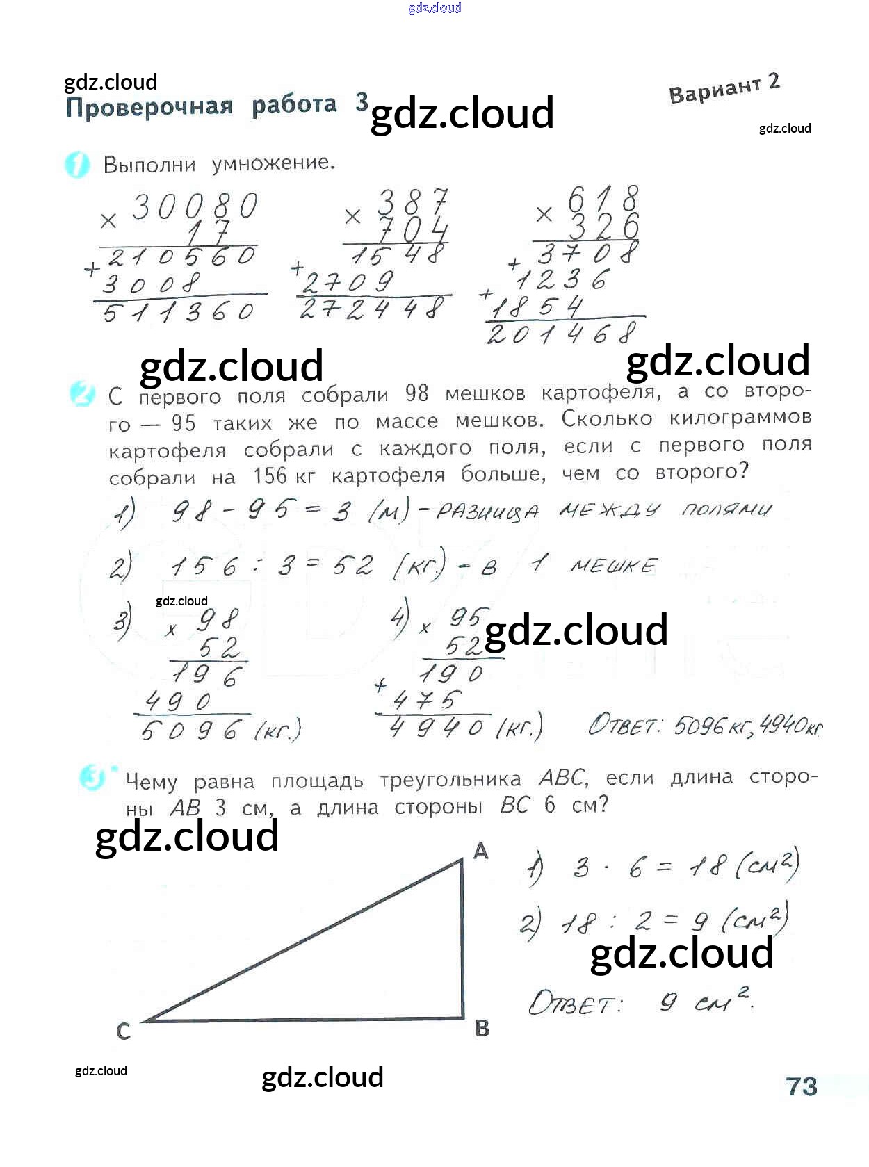 Ответ на задание 73 Проверочные работы Математика за 4 (четвертый) класс Волкова Школа России 2014