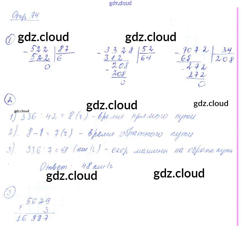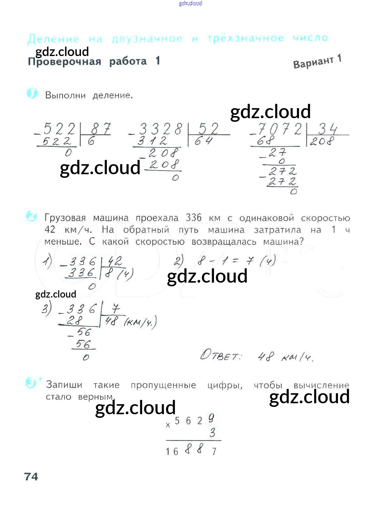 Ответ на задание 74 Проверочные работы Математика за 4 (четвертый) класс Волкова Школа России 2014