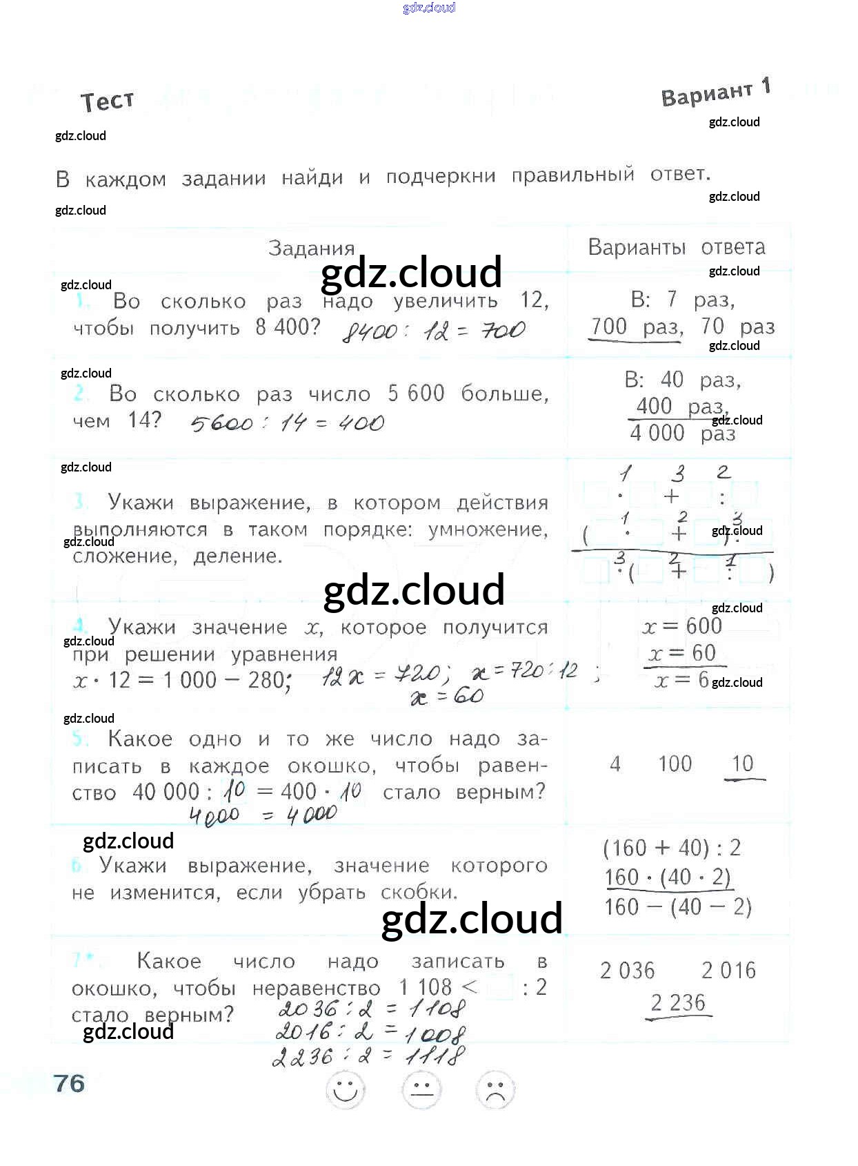 Ответ на задание 76 Проверочные работы Математика за 4 (четвертый) класс Волкова Школа России 2014