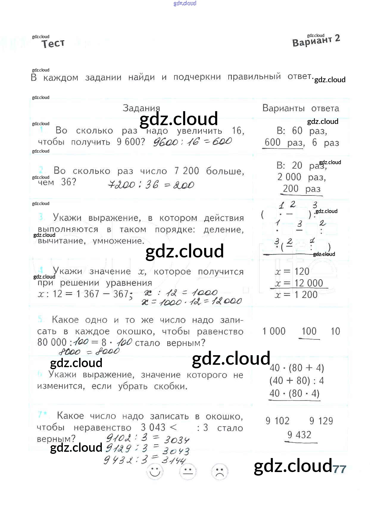 Ответ на задание 77 Проверочные работы Математика за 4 (четвертый) класс Волкова Школа России 2014