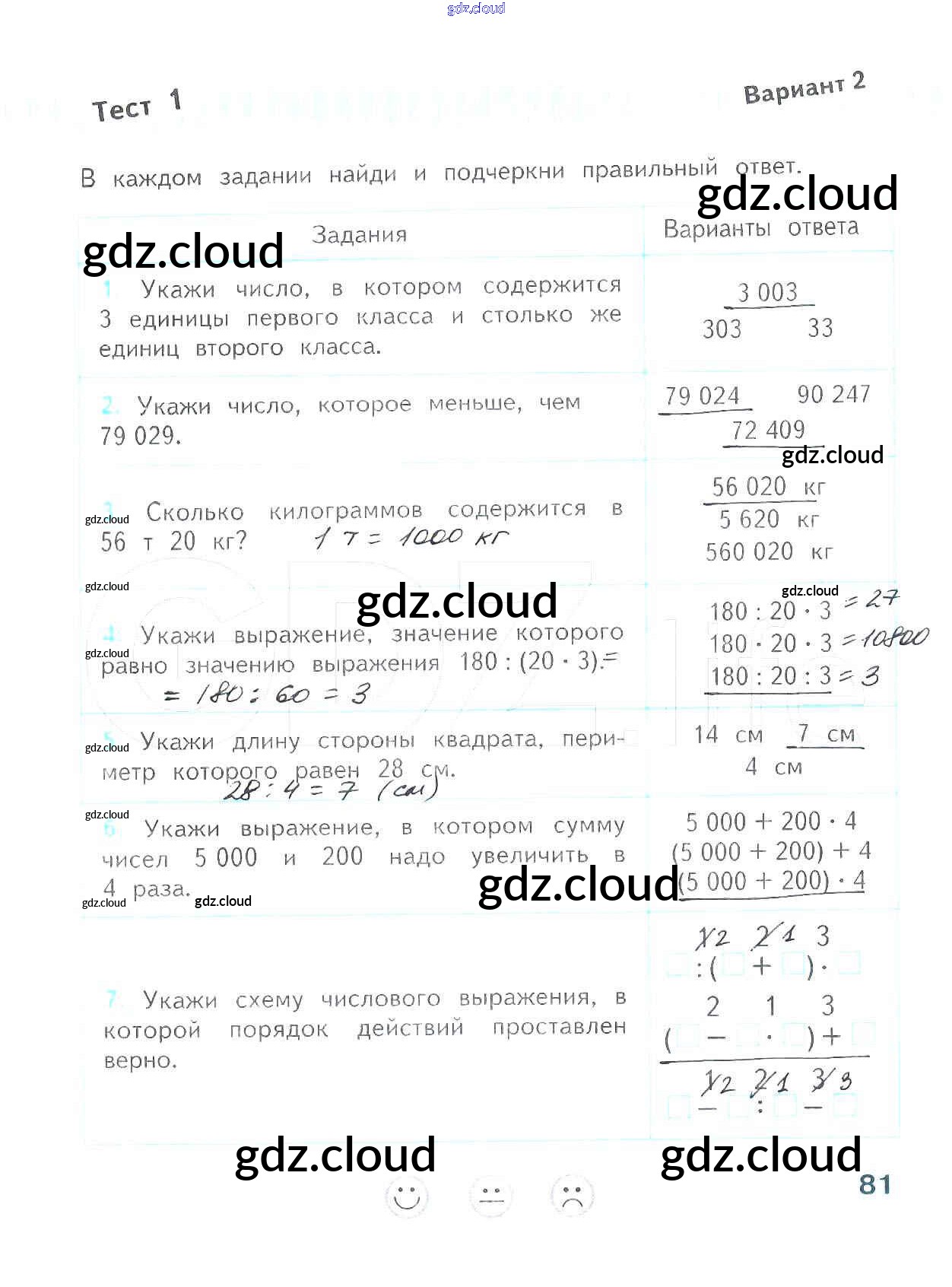 Ответ на задание 81 Проверочные работы Математика за 4 (четвертый) класс Волкова Школа России 2014