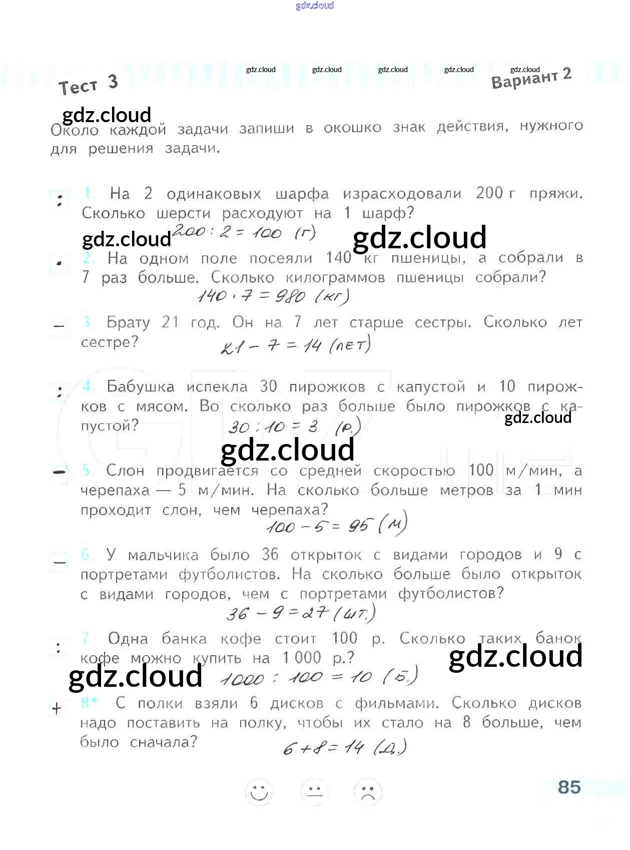 Ответ на задание 85 Проверочные работы Математика за 4 (четвертый) класс Волкова Школа России 2014