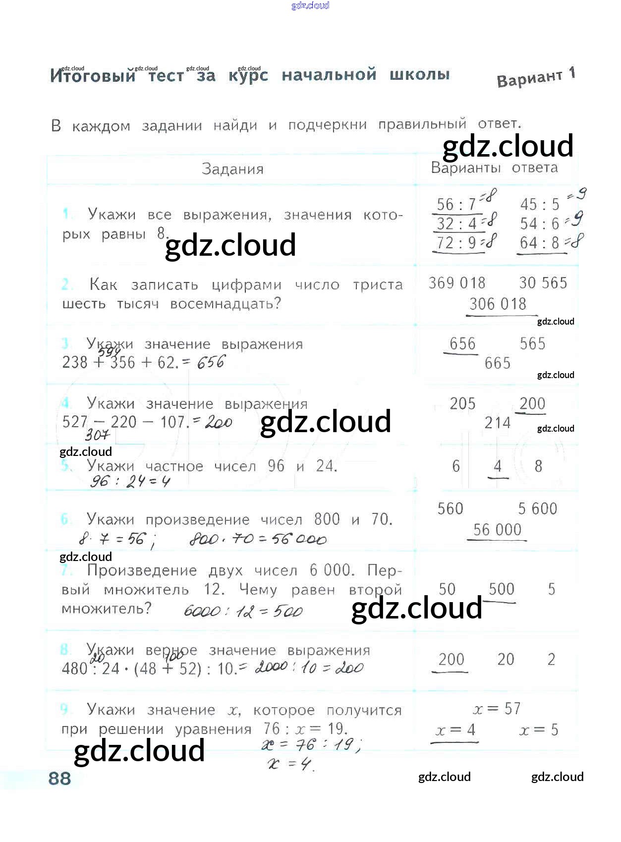 Ответ на задание 88 Проверочные работы Математика за 4 (четвертый) класс Волкова Школа России 2014