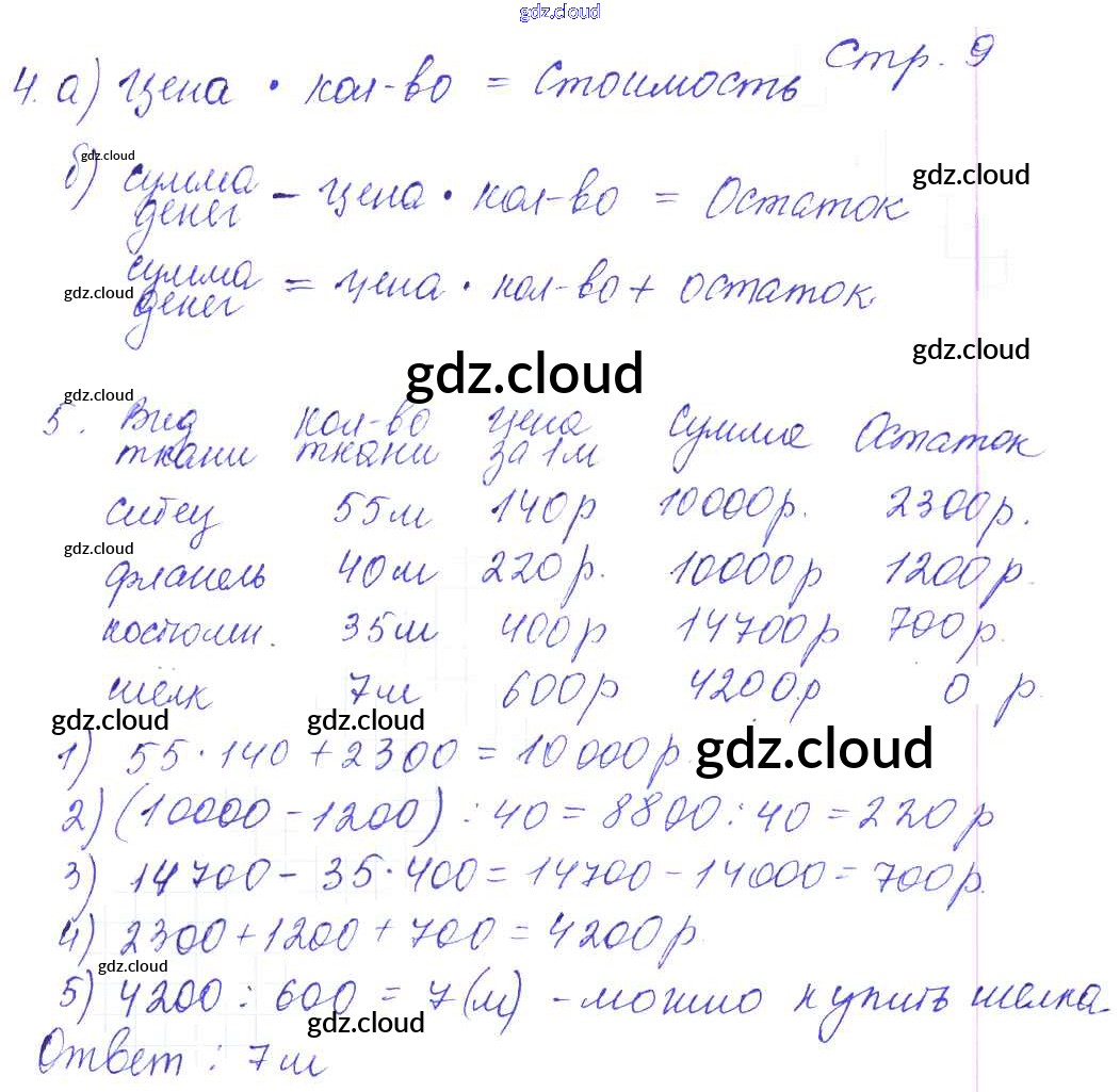 Ответ на задание 9 Рабочая тетрадь Математика  за 4 (четвертый) класс Башмаков, Нефедова Планета знаний  2016 Часть 1, 2