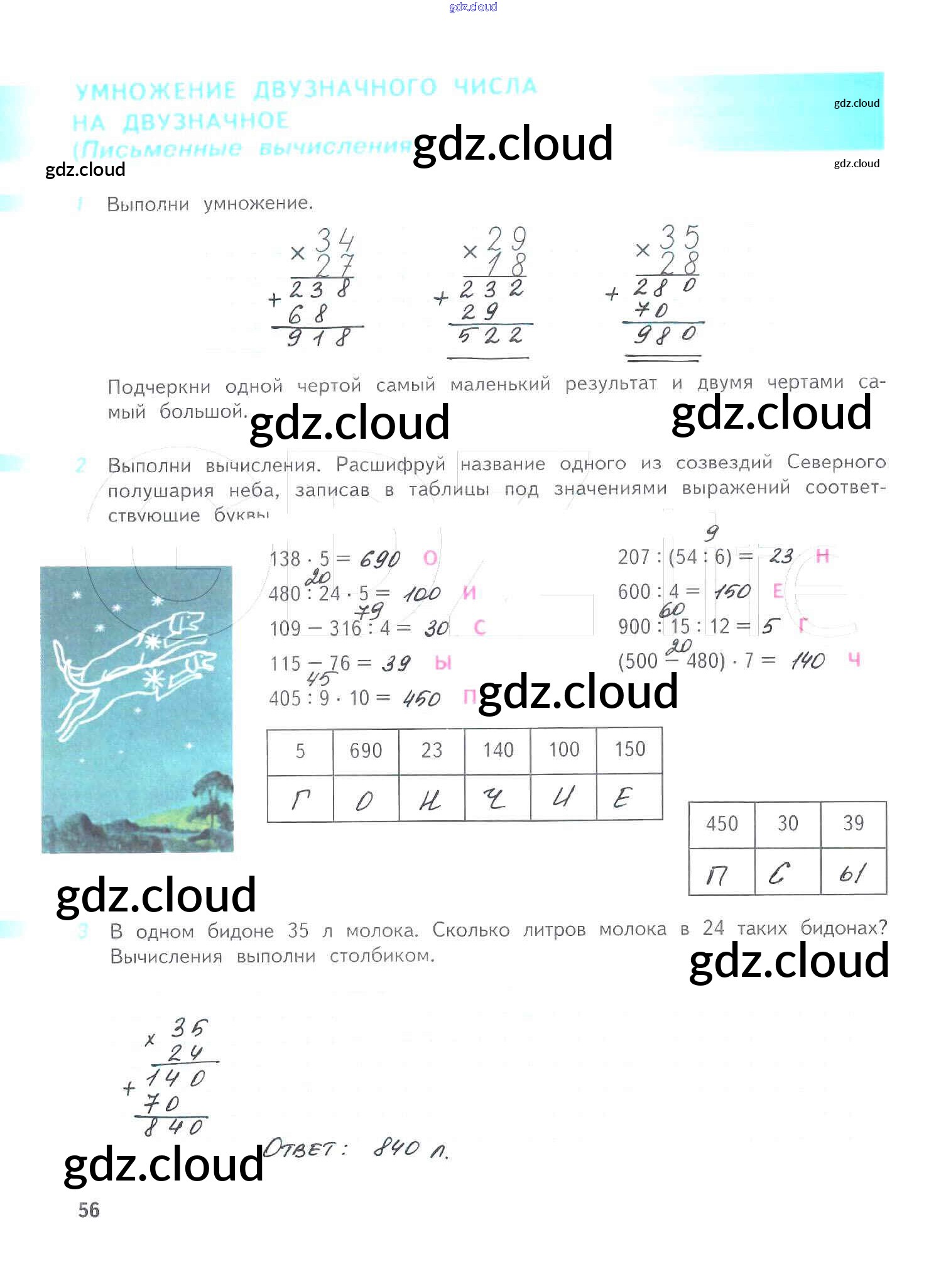 Ответ на задание 56 Рабочая тетрадь Математика за 4 (четвертый) класс Дорофеев, Миракова, Бука Перспектива 2017 Часть 1, 2
