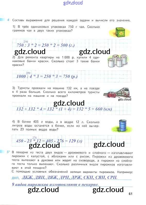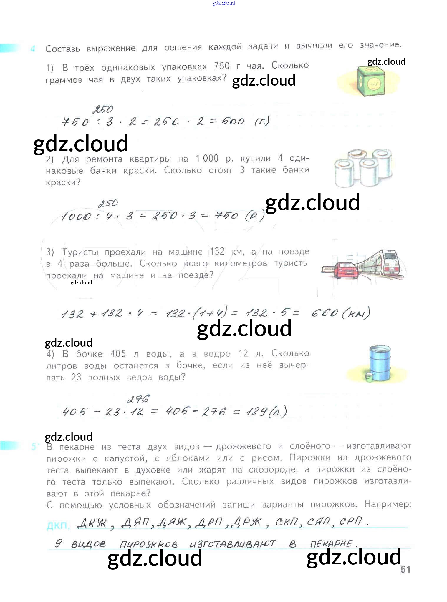Ответ на задание 61 Рабочая тетрадь Математика за 4 (четвертый) класс Дорофеев, Миракова, Бука Перспектива 2017 Часть 1, 2