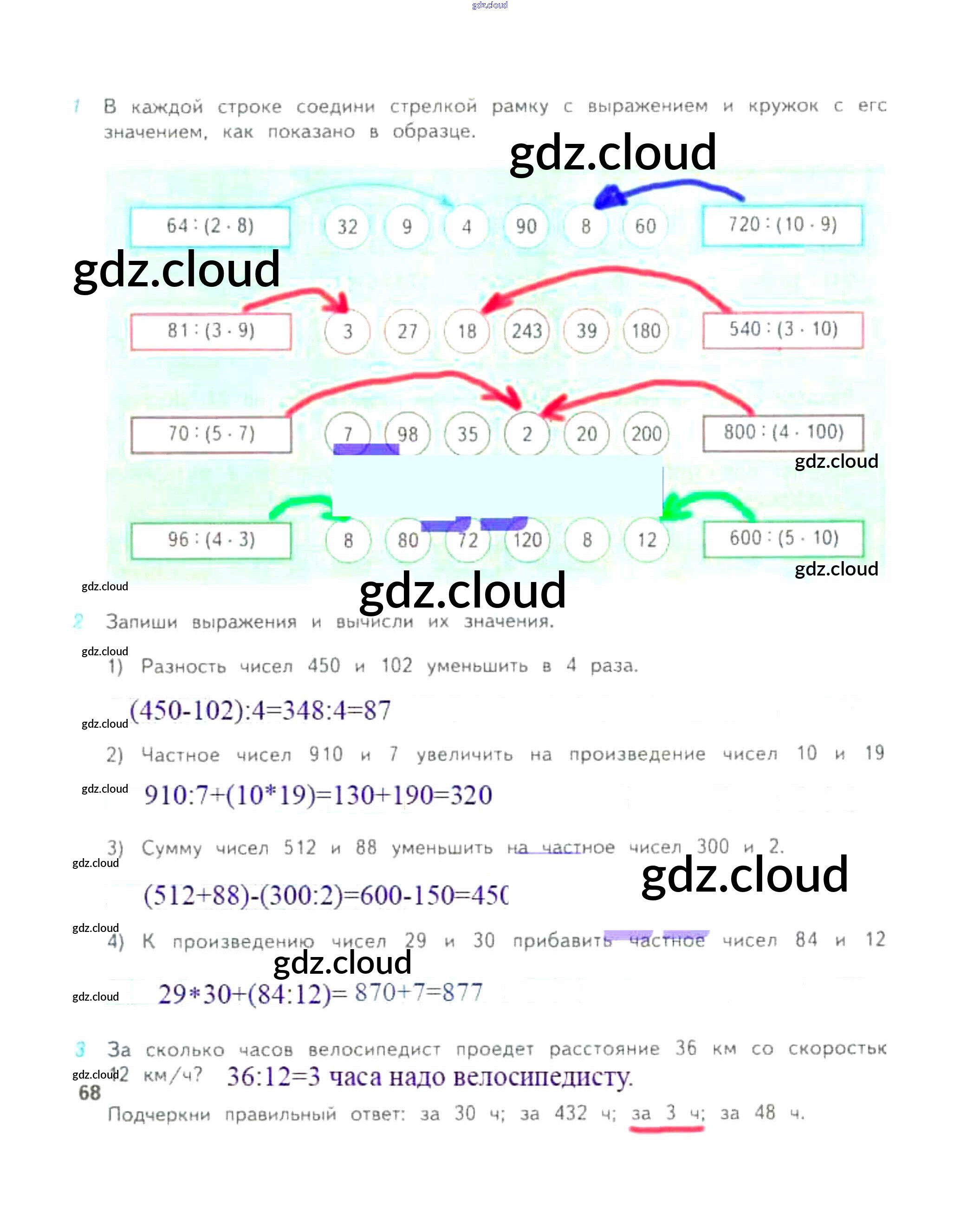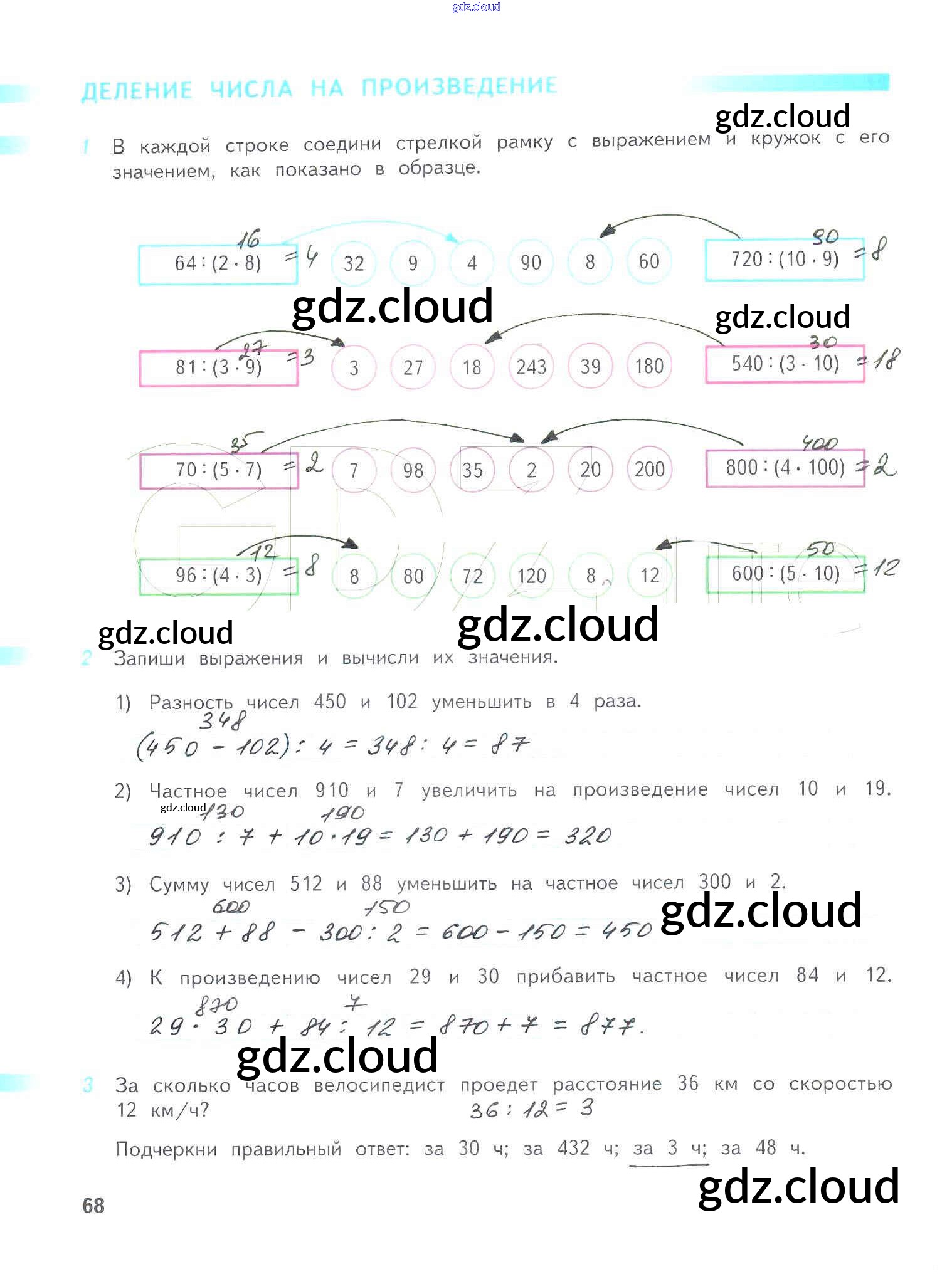 Ответ на задание 68 Рабочая тетрадь Математика за 4 (четвертый) класс Дорофеев, Миракова, Бука Перспектива 2017 Часть 1, 2