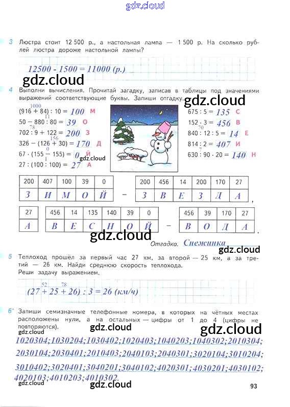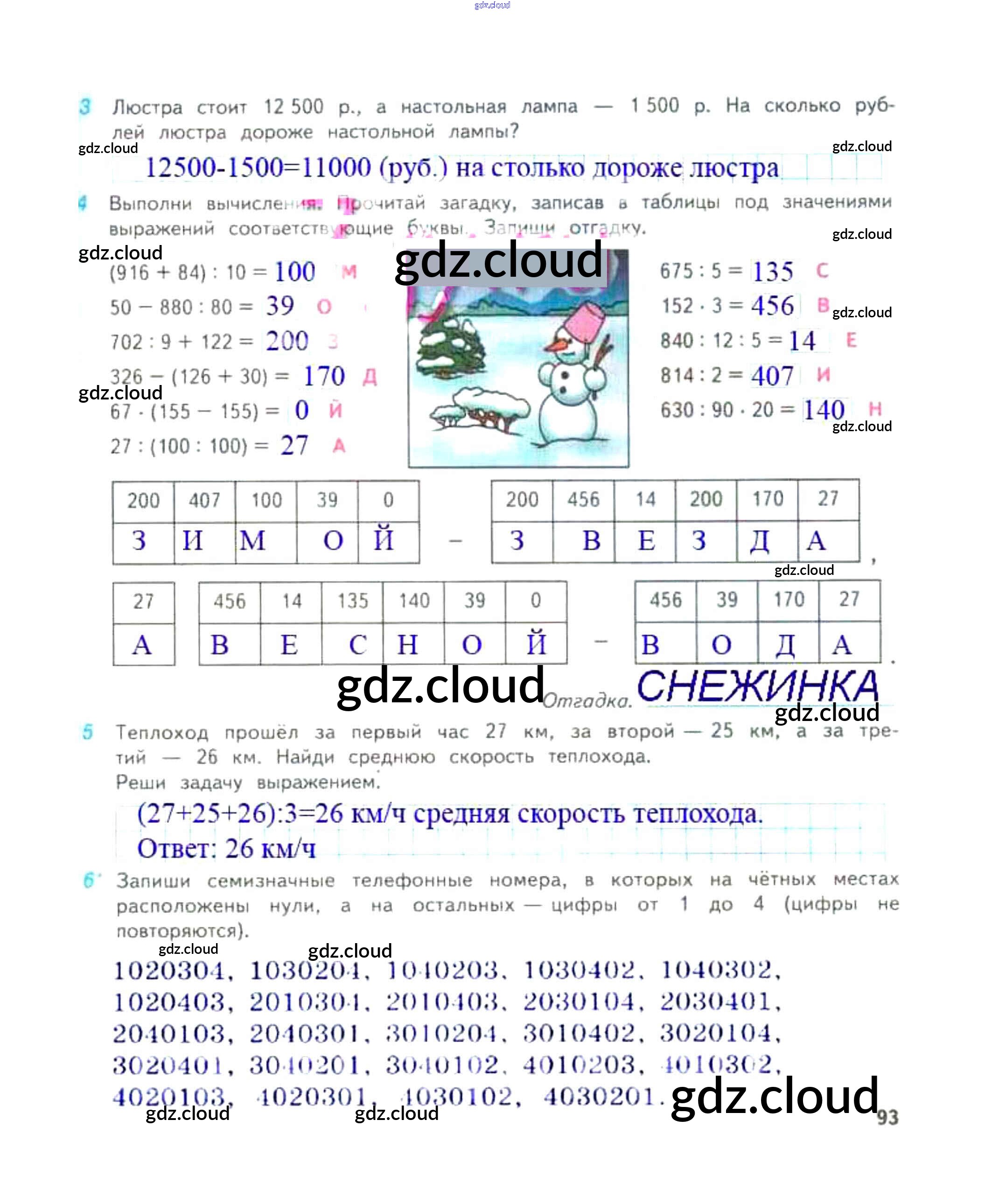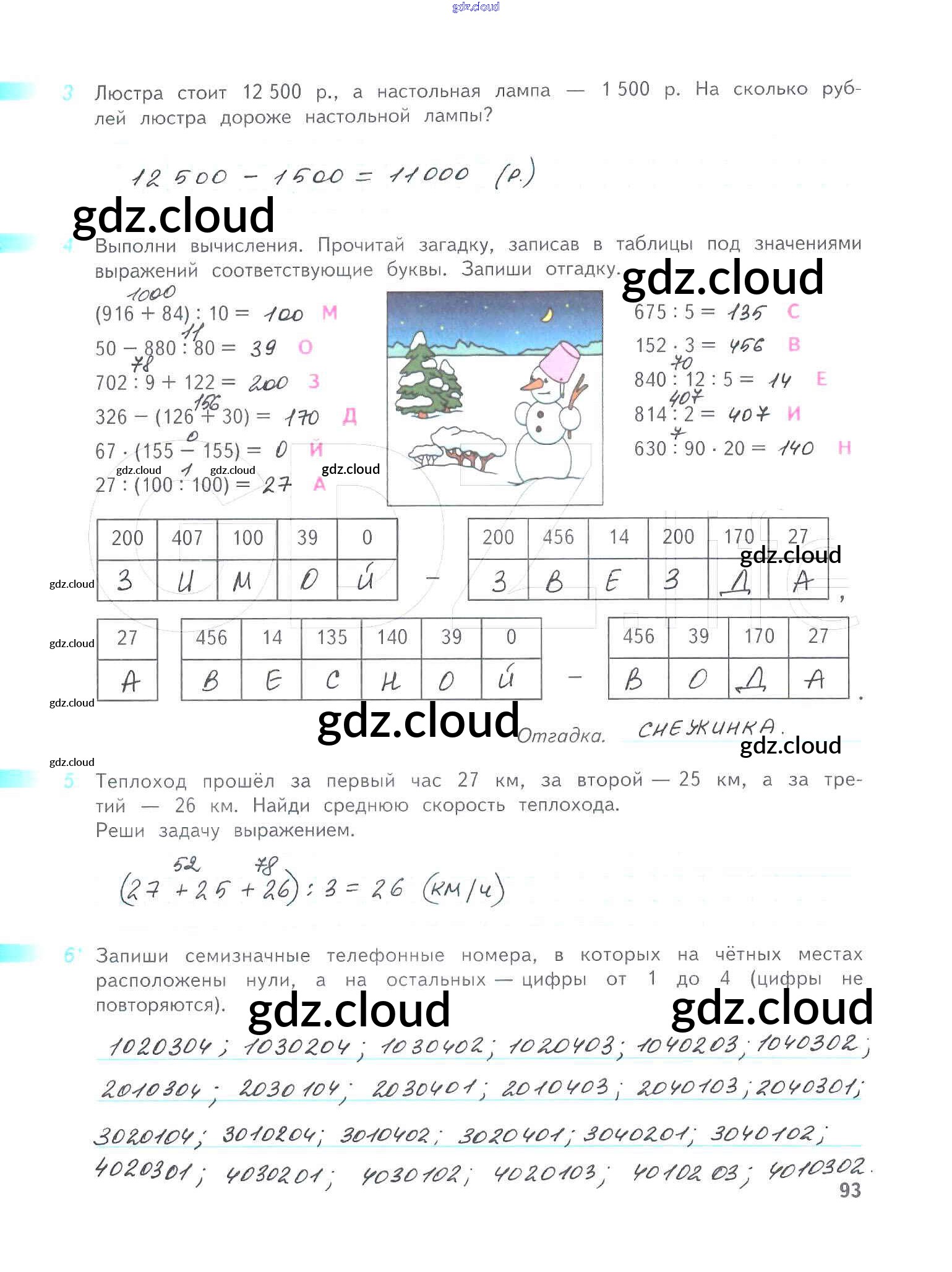 Ответ на задание 93 Рабочая тетрадь Математика за 4 (четвертый) класс Дорофеев, Миракова, Бука Перспектива 2017 Часть 1, 2
